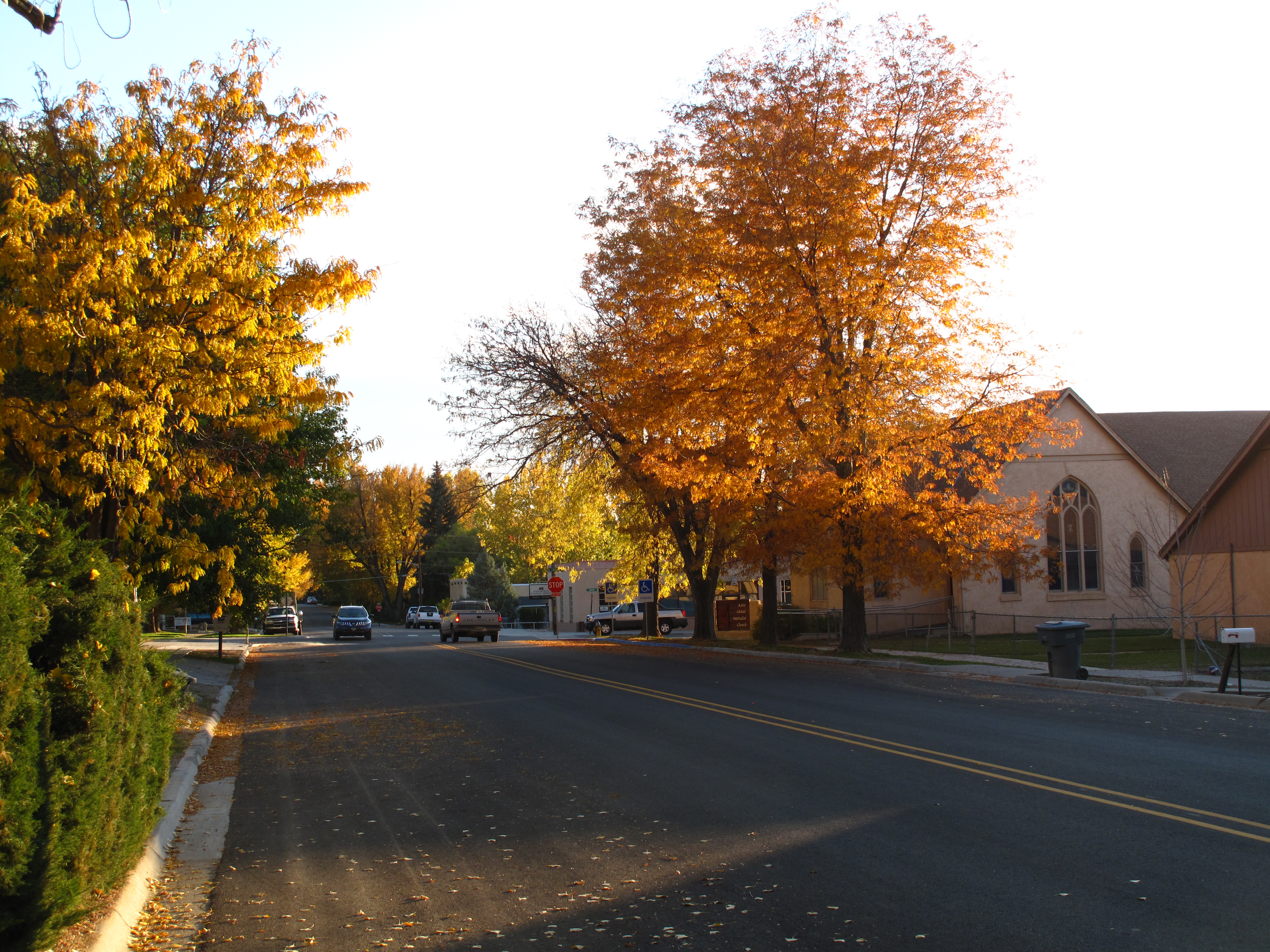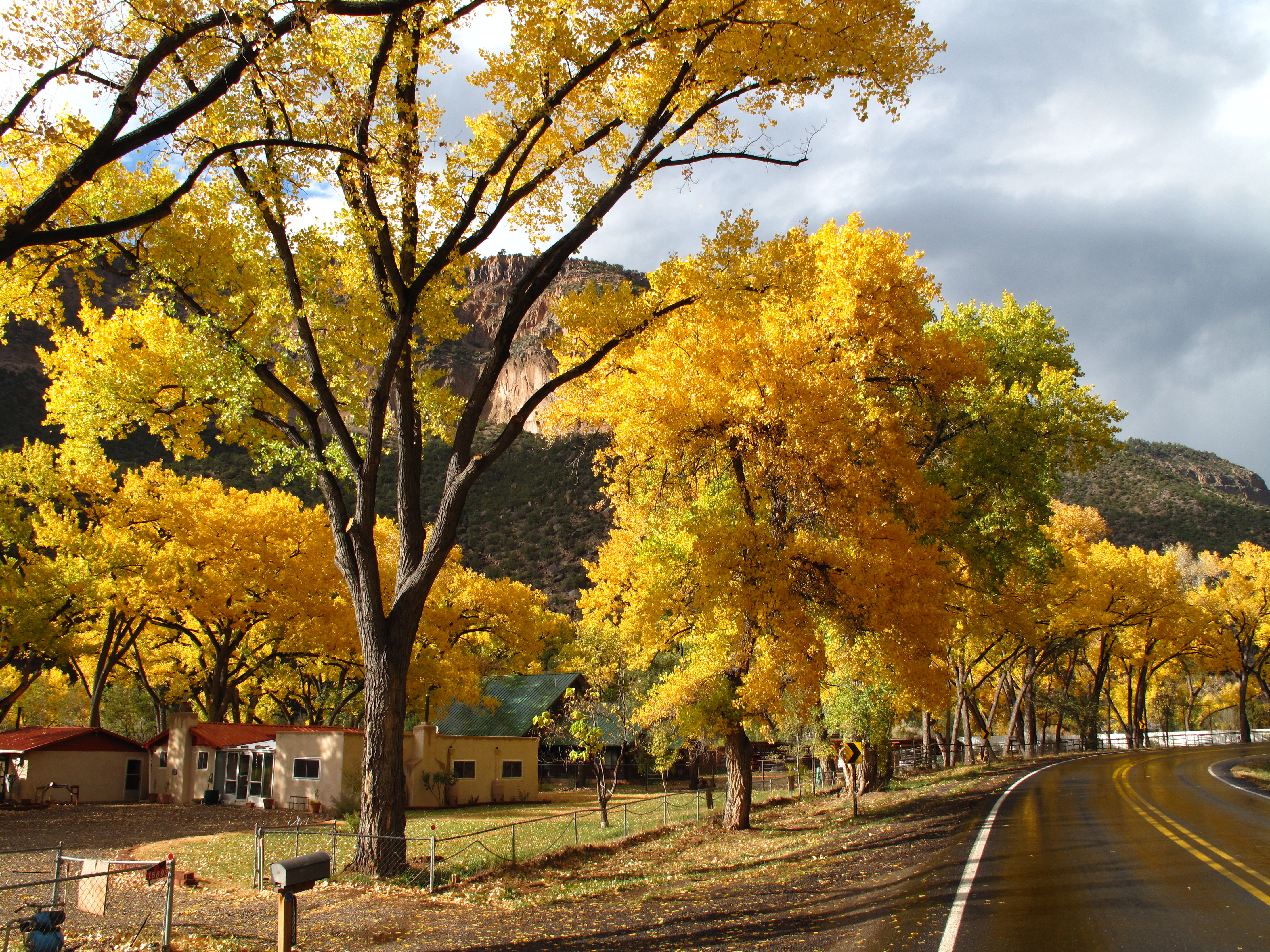 Los Alamos has a discernable business district with two wide avenues, stores, restaurants, and even a Starbucks. It is also a residential enclave for professionals with families. I saw a lot of little children about. With Halloween upcoming Central Avenue was festively decorated with flower baskets and straw-stuffed scarecrows tied to lampposts.
