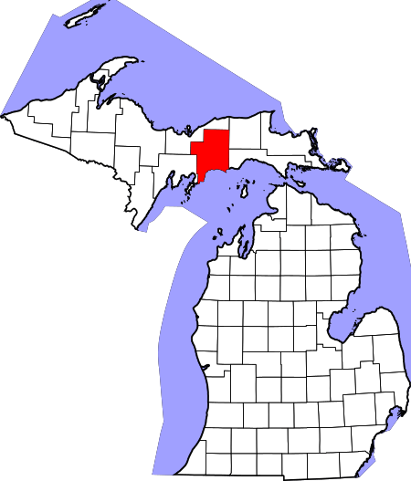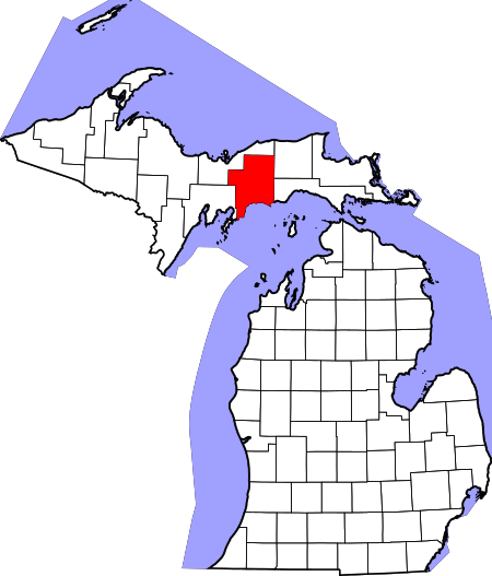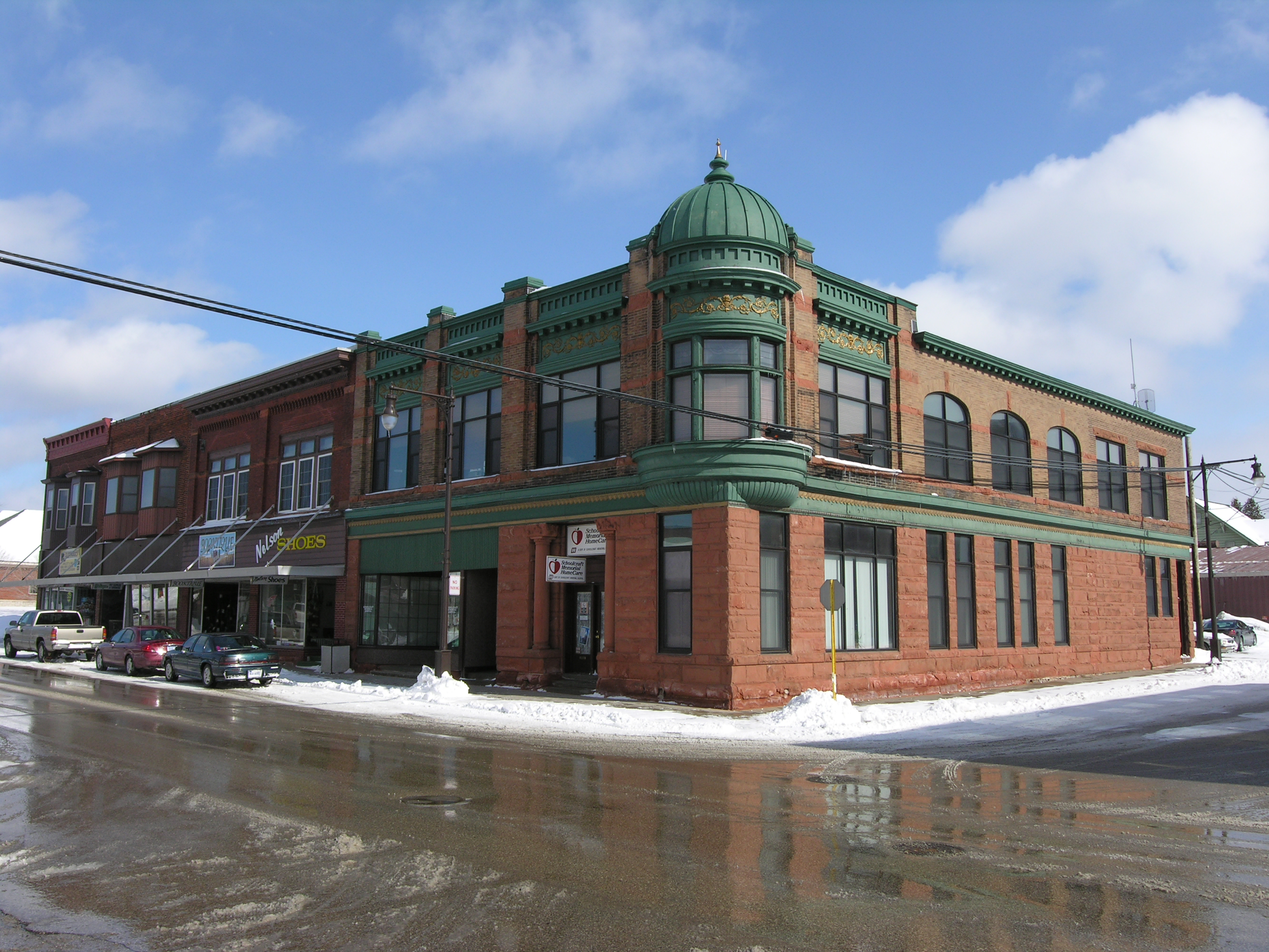 At the turn of the 20th Century Michigan’s Upper Peninsula (known as the “U.P.”) was famous for its Jacobsville red sandstone, a burgundy red stone in demand worldwide. Architects loved to use Jacobsville for the facades of their best structures since artisans could carve intricate designs into the stone without compromising its strength. Jacobsville was used in the Tribune Building in Chicago and at the original Waldorf-Astoria in New York among many other places. Manistique has one such Jacobsville building — it originally housed a prominent bank but now a home health agency occupies the first and second floors.