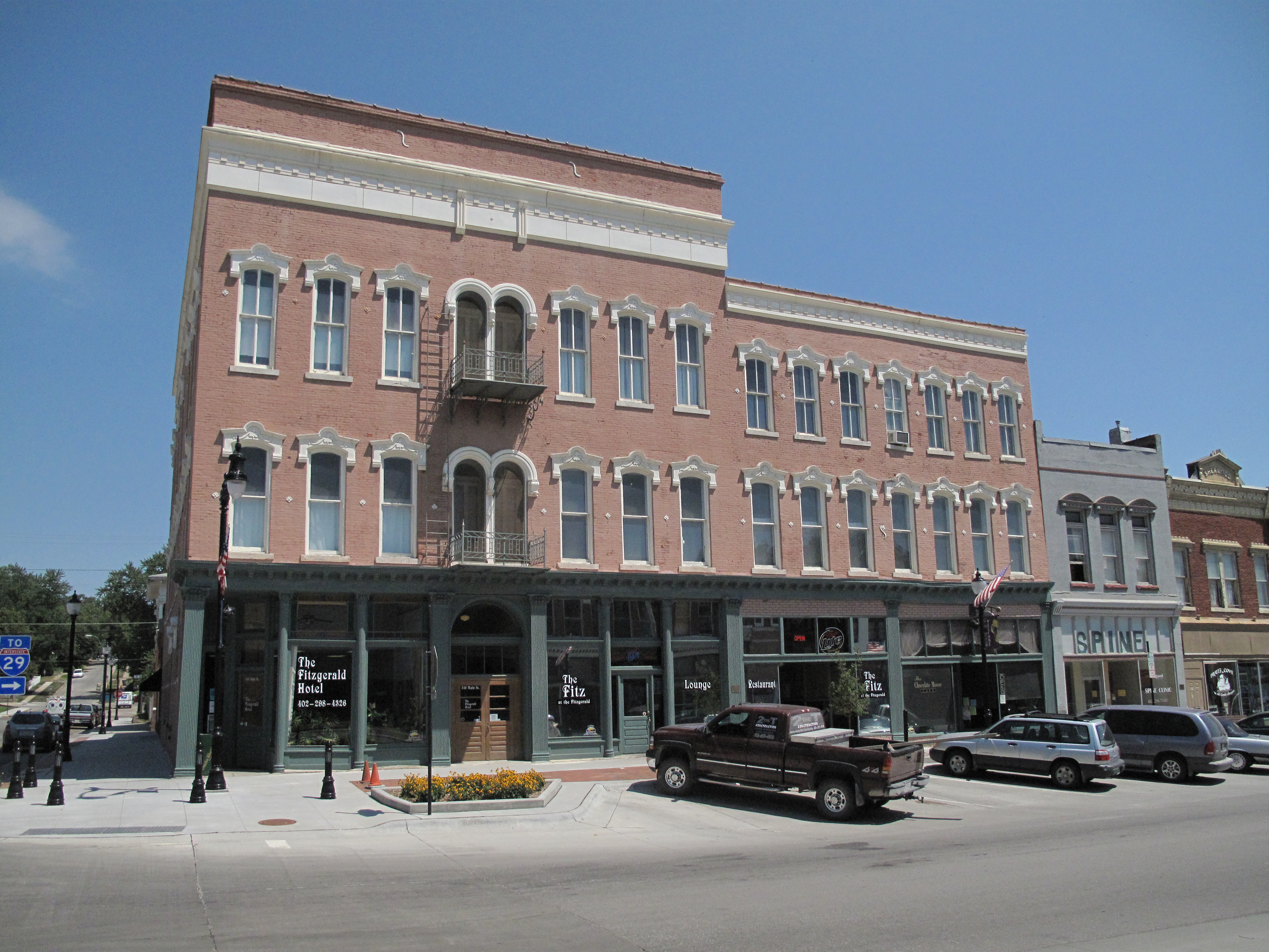 The storefronts are open.  The old hotel — The Fitzgerald — is open for business as well.