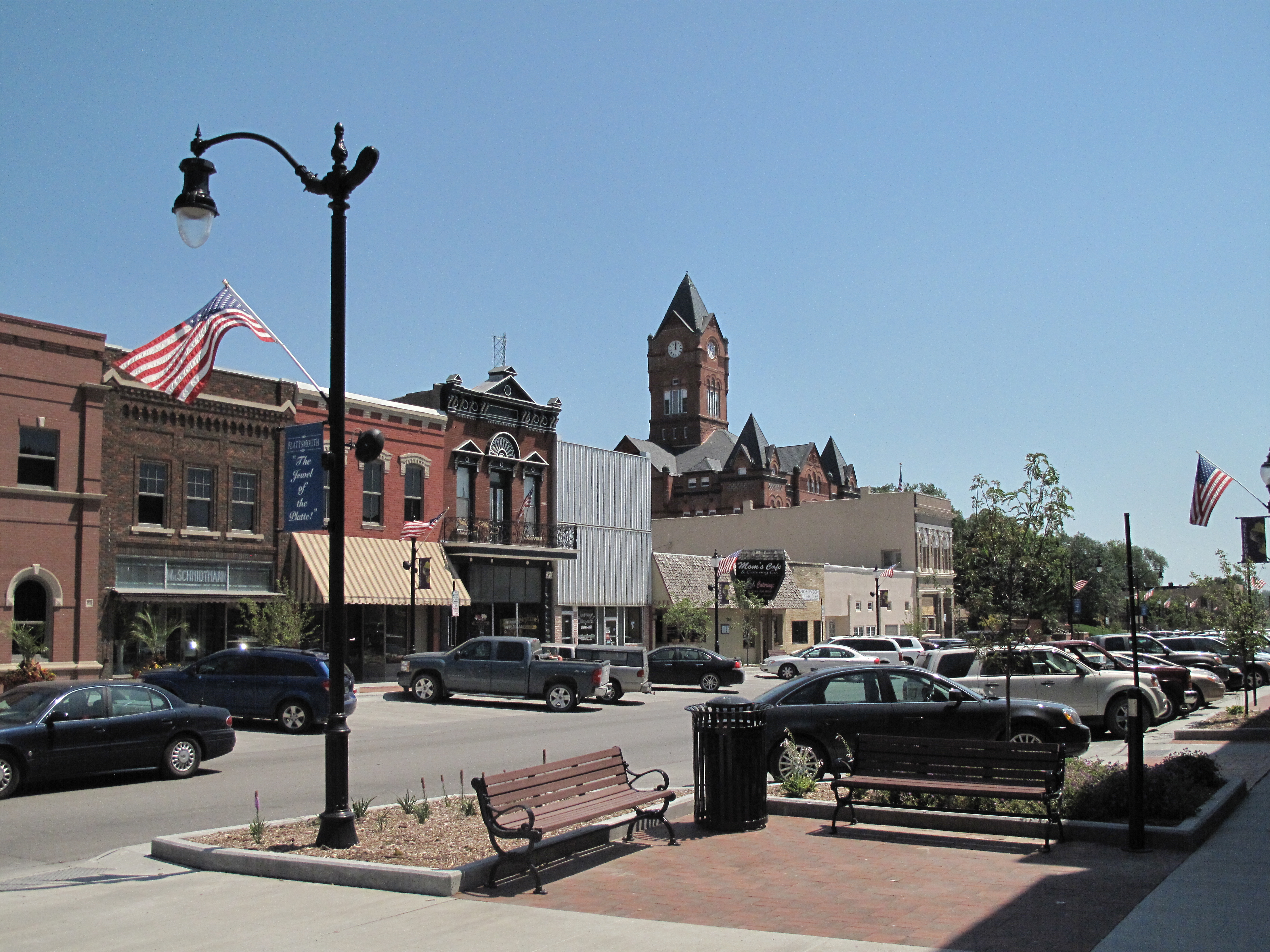 Main Street Plattsmouth with courthouse tower in background