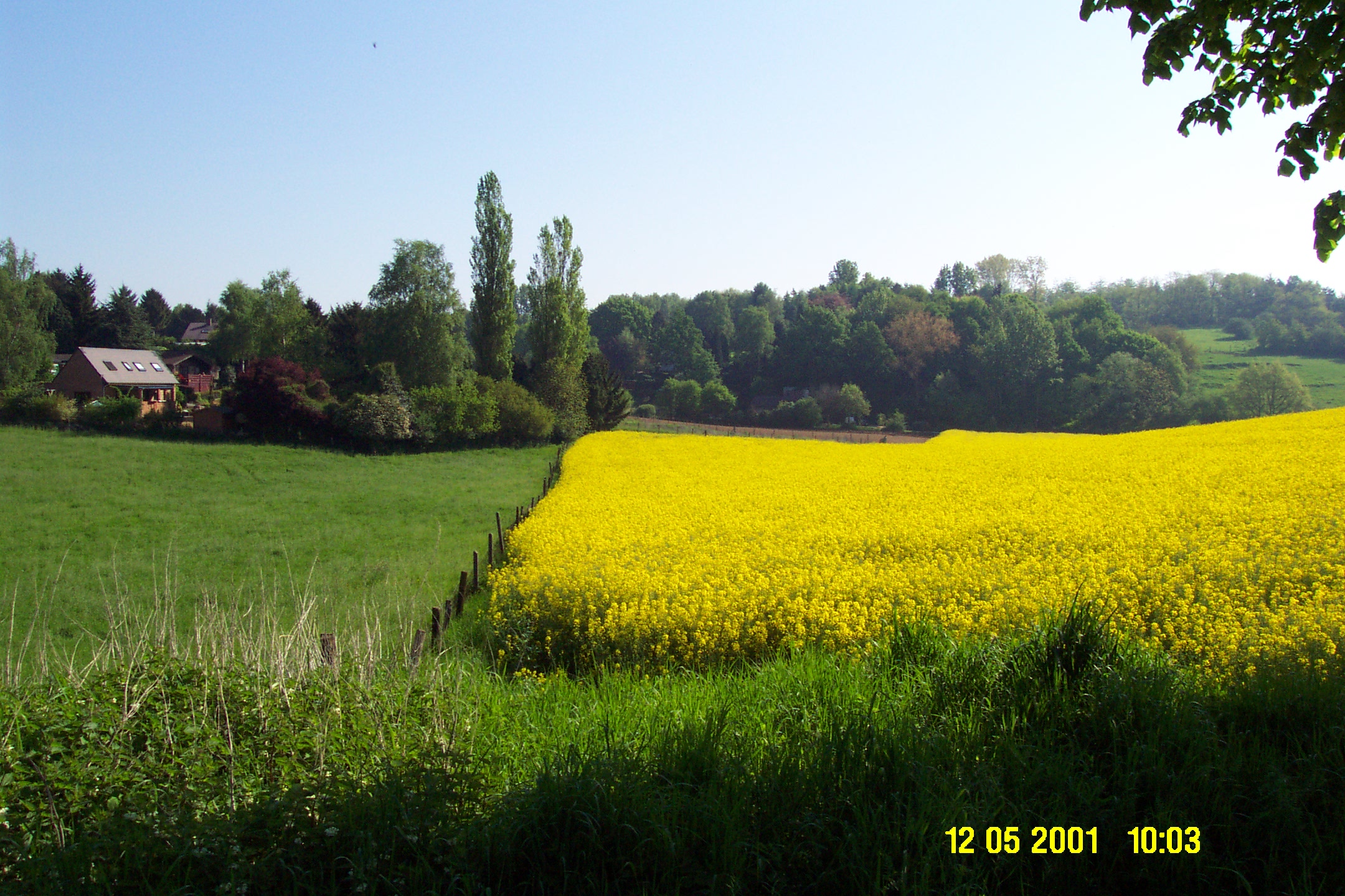 One More Bright Yellow Summer Field — Countryside near Leuven, Belgium:  2 photos of canola fields in Belgium plus a nearby farming village.  These were taken in the month of May, but it sure looks like summertime to me.