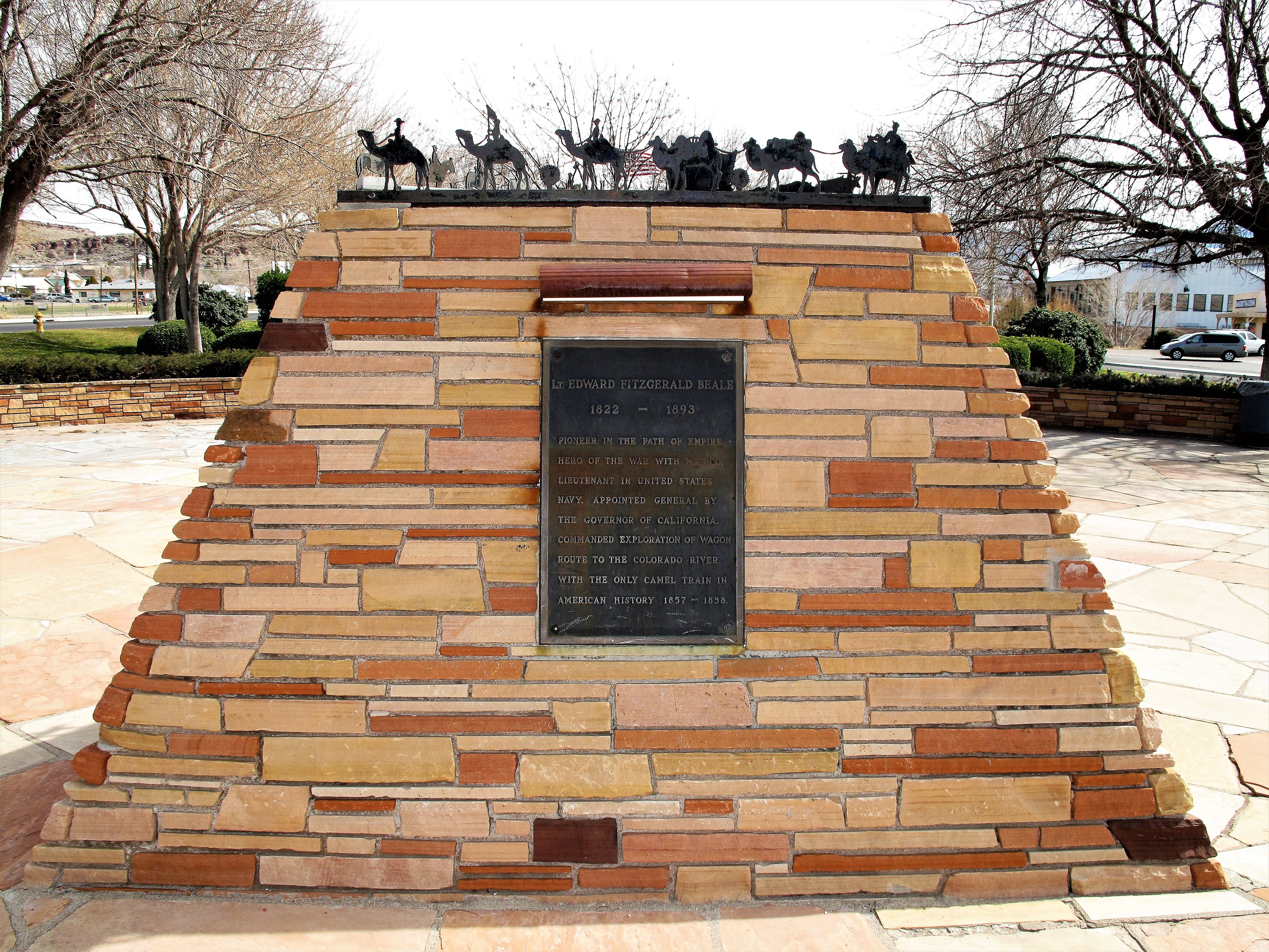 Lt. Edward Fitzgerald Beale, 1822-1893. Pioneer in the Path of Empire. Hero of the War with Mexico. Lieutenant in the United States Navy. Appointed General by the Governor of California. Commanded exploration of wagon route to the Colorado River with the only camel train in American history, 1857-1858.