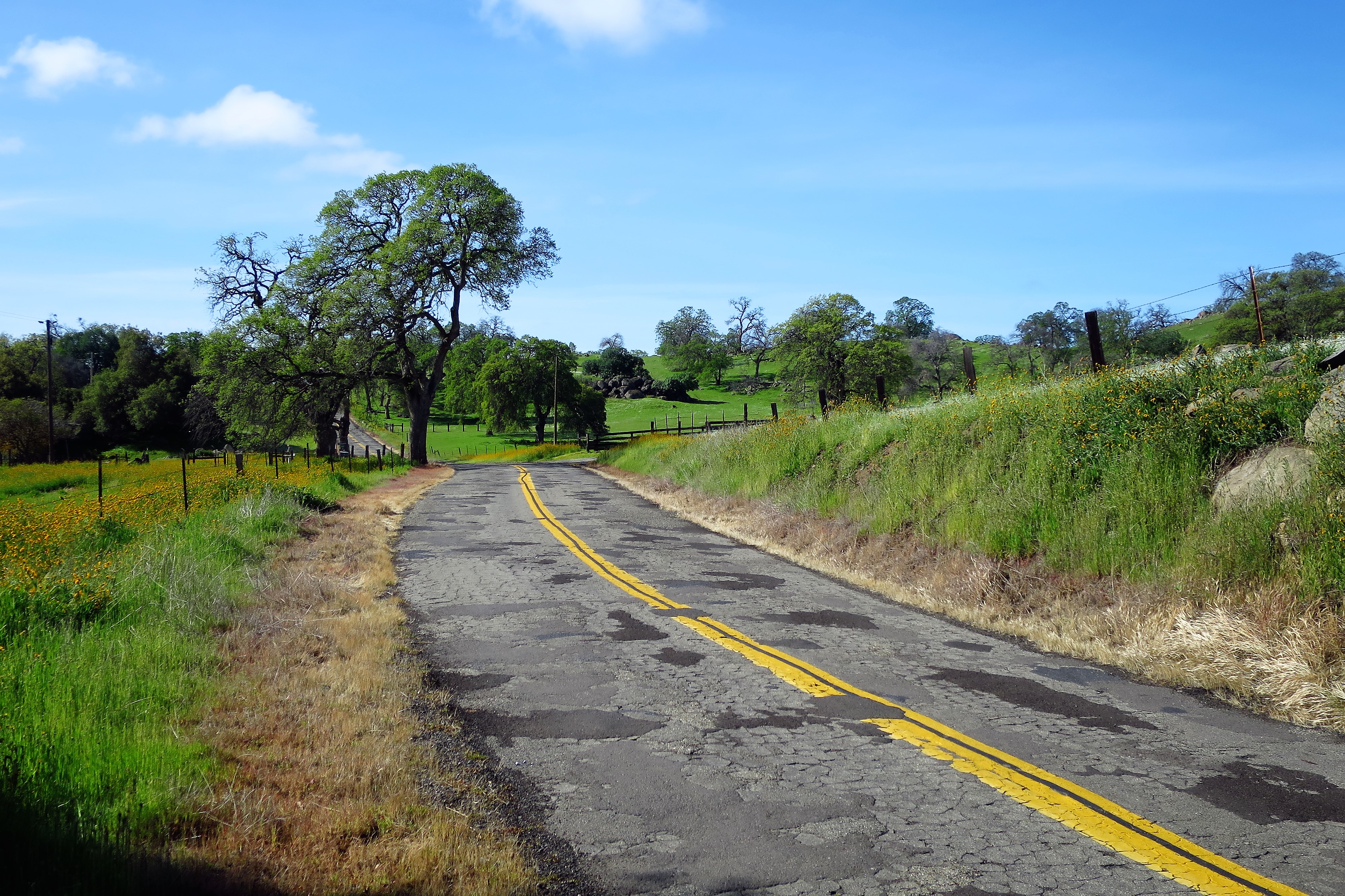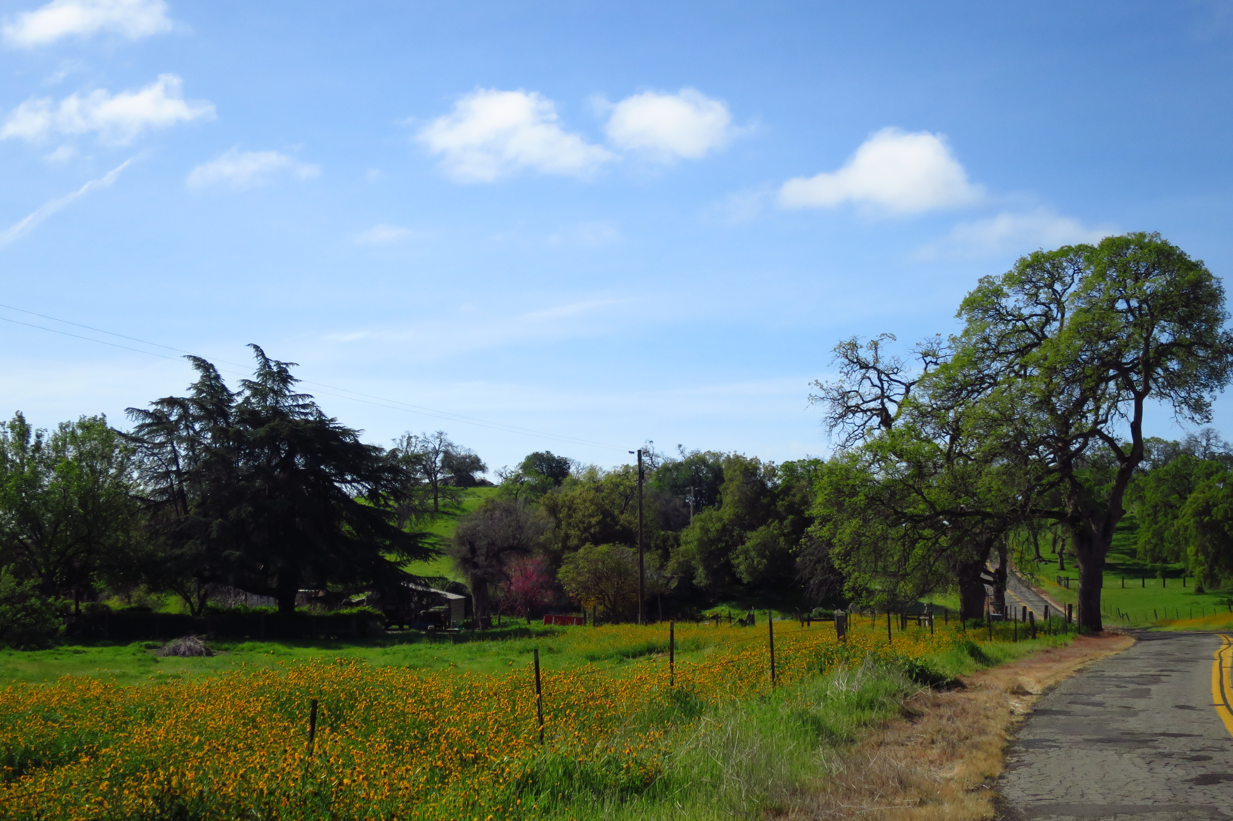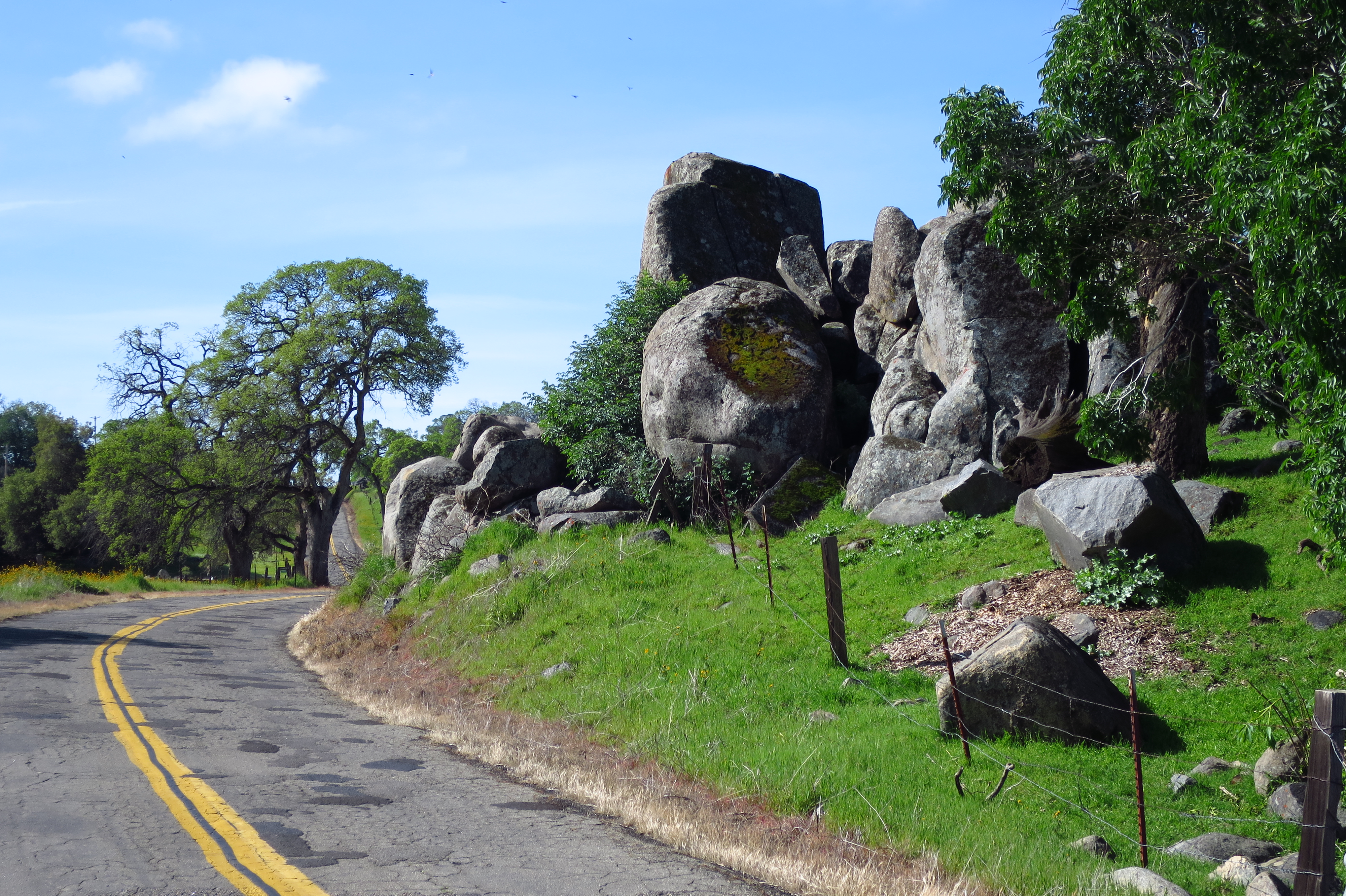 To get here, start from the San Joaquin Valley raisin towns of Fresno or Madera on a clear March morning (as I did, back in March 2016). Then, put away the road map and turn on Google Maps. Change the settings to “avoid highways” and follow the roads uphill. Here’s what your climb will look like: