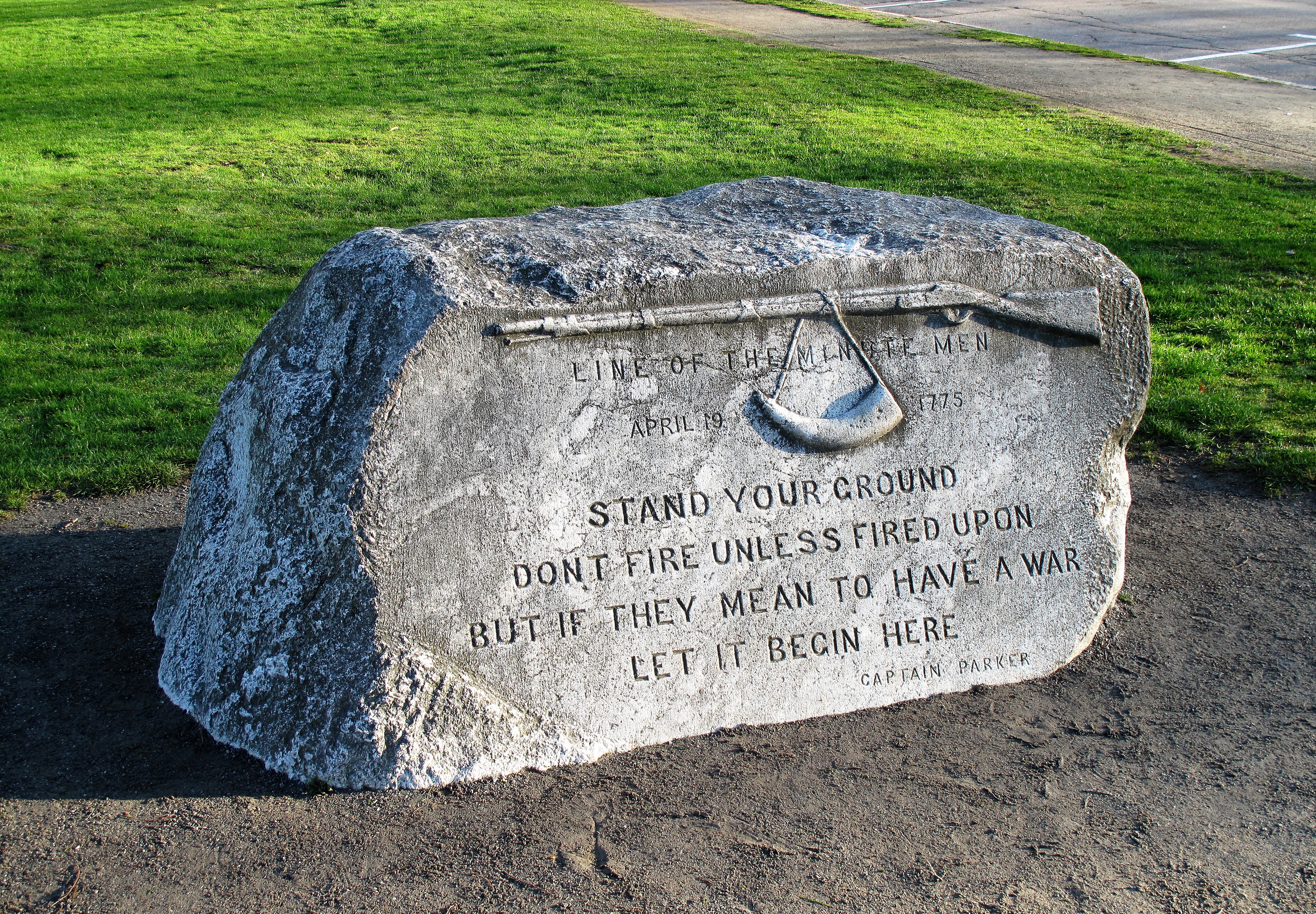 The words attributed to Captain John Parker of Lexington are memorialized in stone: