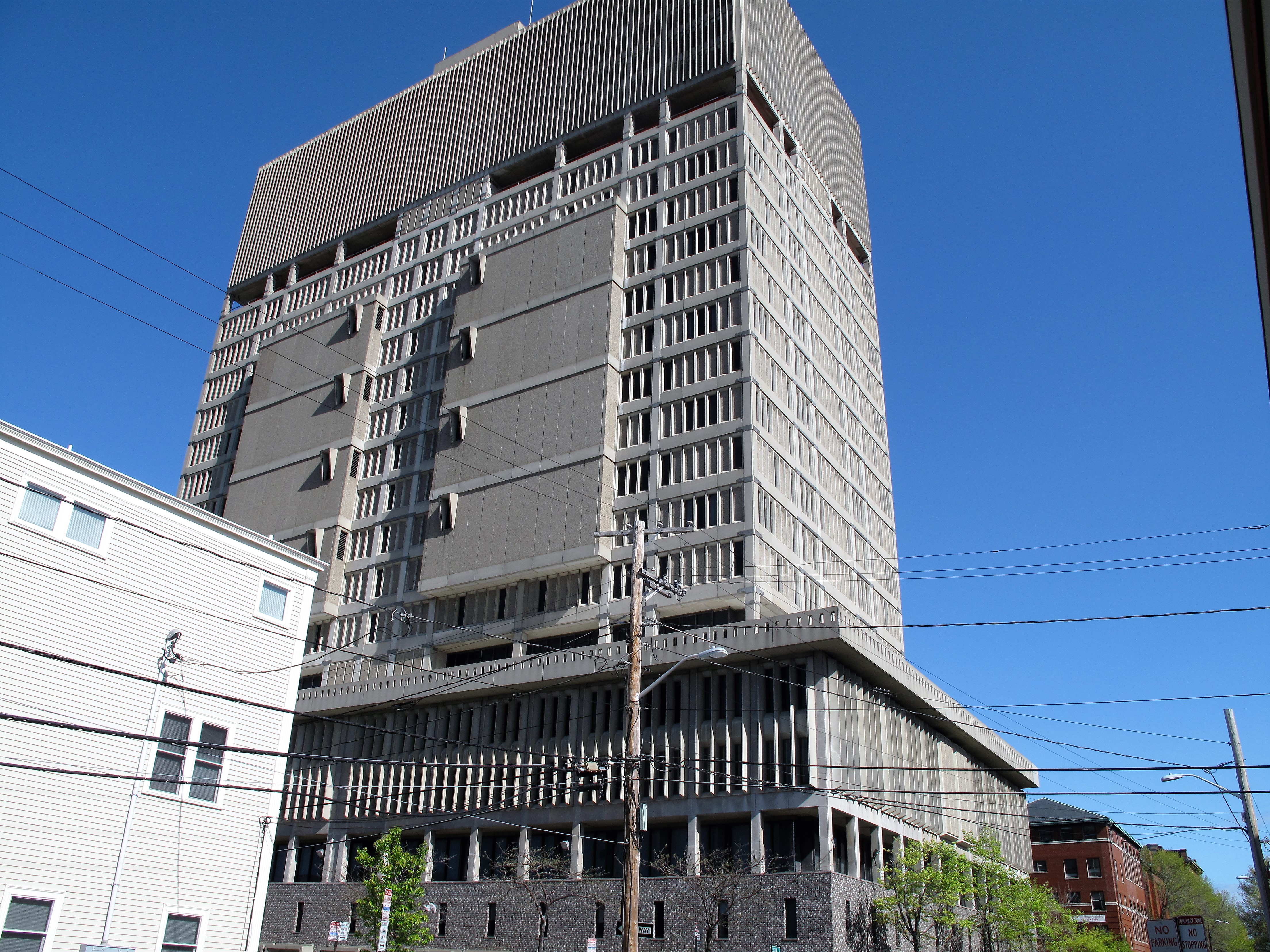 Later on, I drove down to Cambridge, the county seat. The Middlesex County Courthouse looks more like a military stronghold than a court of Justice, towering above residential East Cambridge like Saruman’s Tower from Lord of the Rings.  I believe the jail occupies several of the floors.