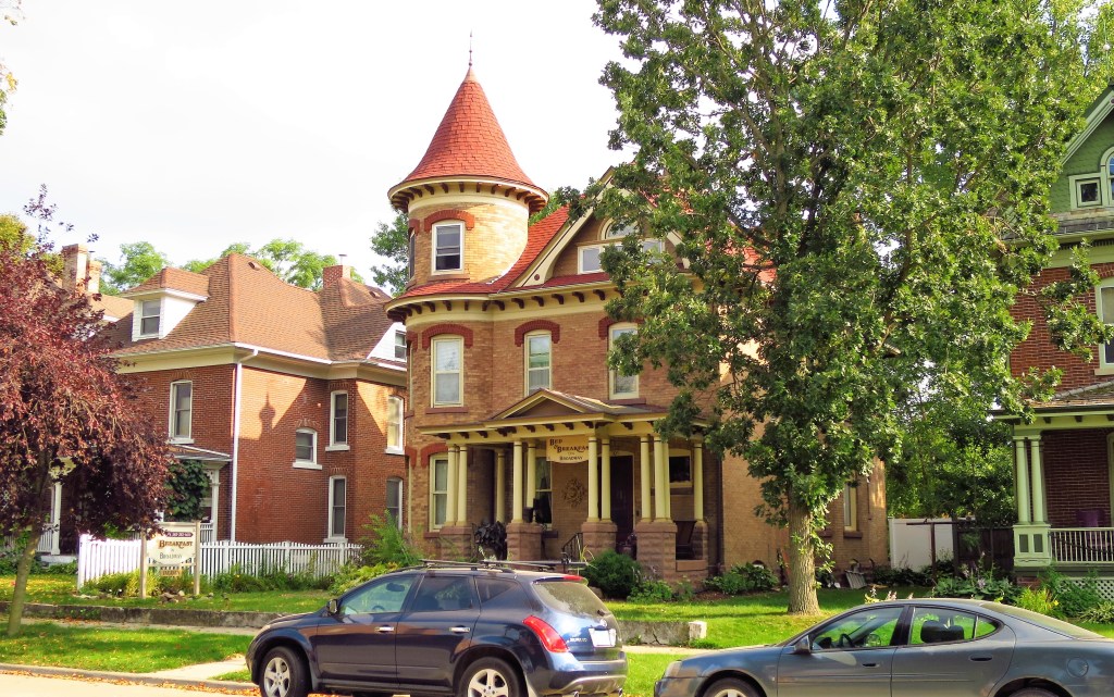 I was out of the building by 4:45, but it being the month of August I still had plenty of daylight to walk around town. West Broadway runs just behind the courthouse and is lined with magnificent houses considered part of the Decorah Historic District. I spent 30 to 40 minutes walking up and down the street photographing classic old mansions and posting the photos on Facebook. Several dozen of my Facebook friends enjoyed the tour along with me, giving the gallery likes and good comments. Some of these houses have been converted to bed and breakfasts (look them up if you like! link is here), while others are private homes.