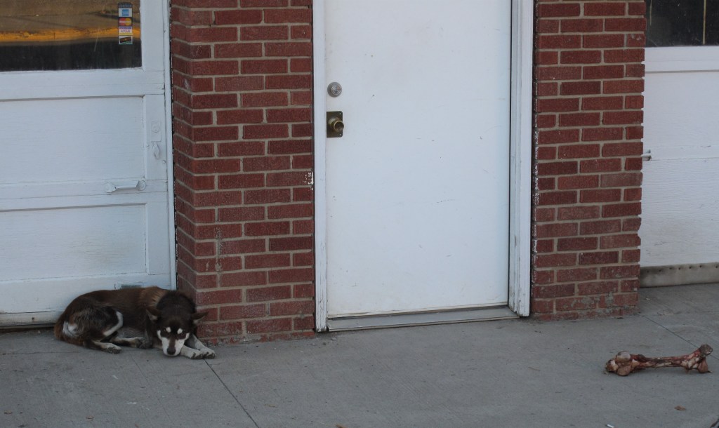 I remained very quiet while taking this next photo of a sleeping dog and a juicy bone. I was careful not to wake the dog nor approach the bone.