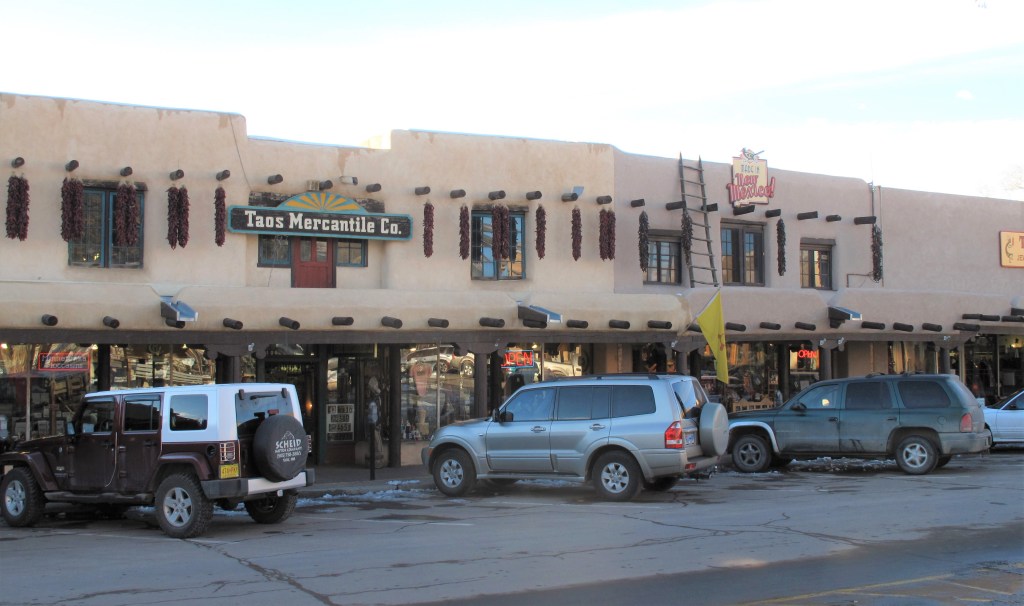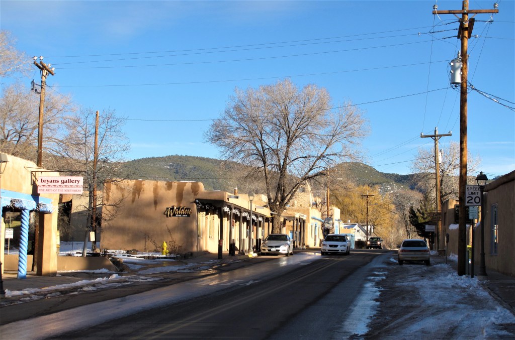 Looking north from Taos Plaza. The famous Taos Inn is in the background.