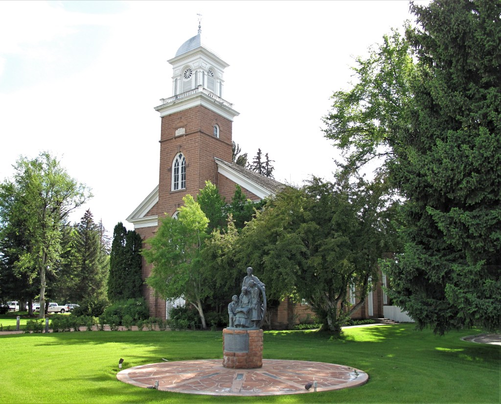 Wasatch Stake Tabernacle with the statue of “The Family,” Heber City, Utah