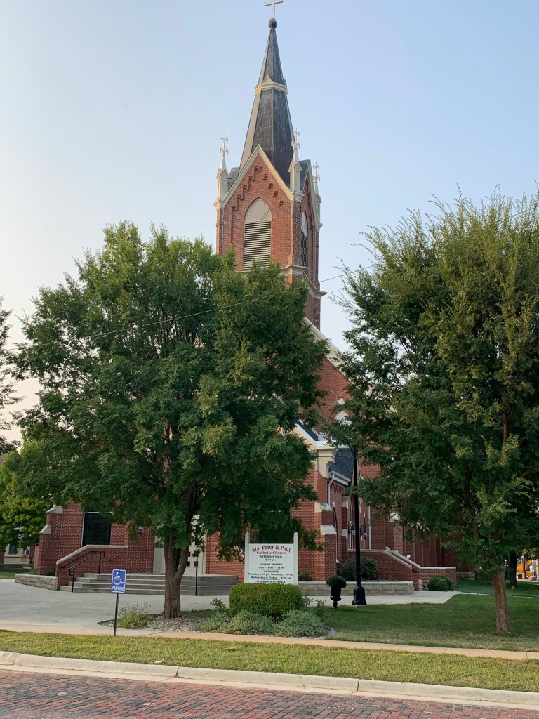 Fall home decorations in SenecaSaints Peter & Paul Catholic Church in Seneca. Its steeple is the highest point in town and can be seen for miles around.Dinner (beef with tomatillo sauce) at El Canelo Mexican restaurant in Seneca, Kansas