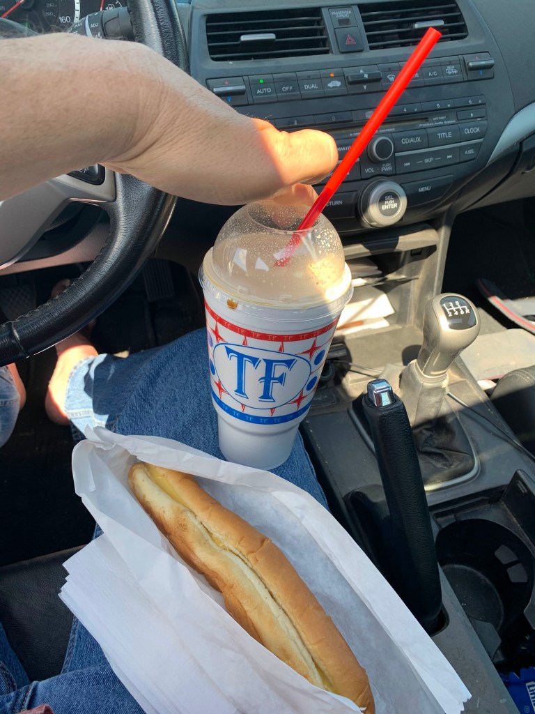 I had a footlong and a shake at a nearby Tastee Freeze.