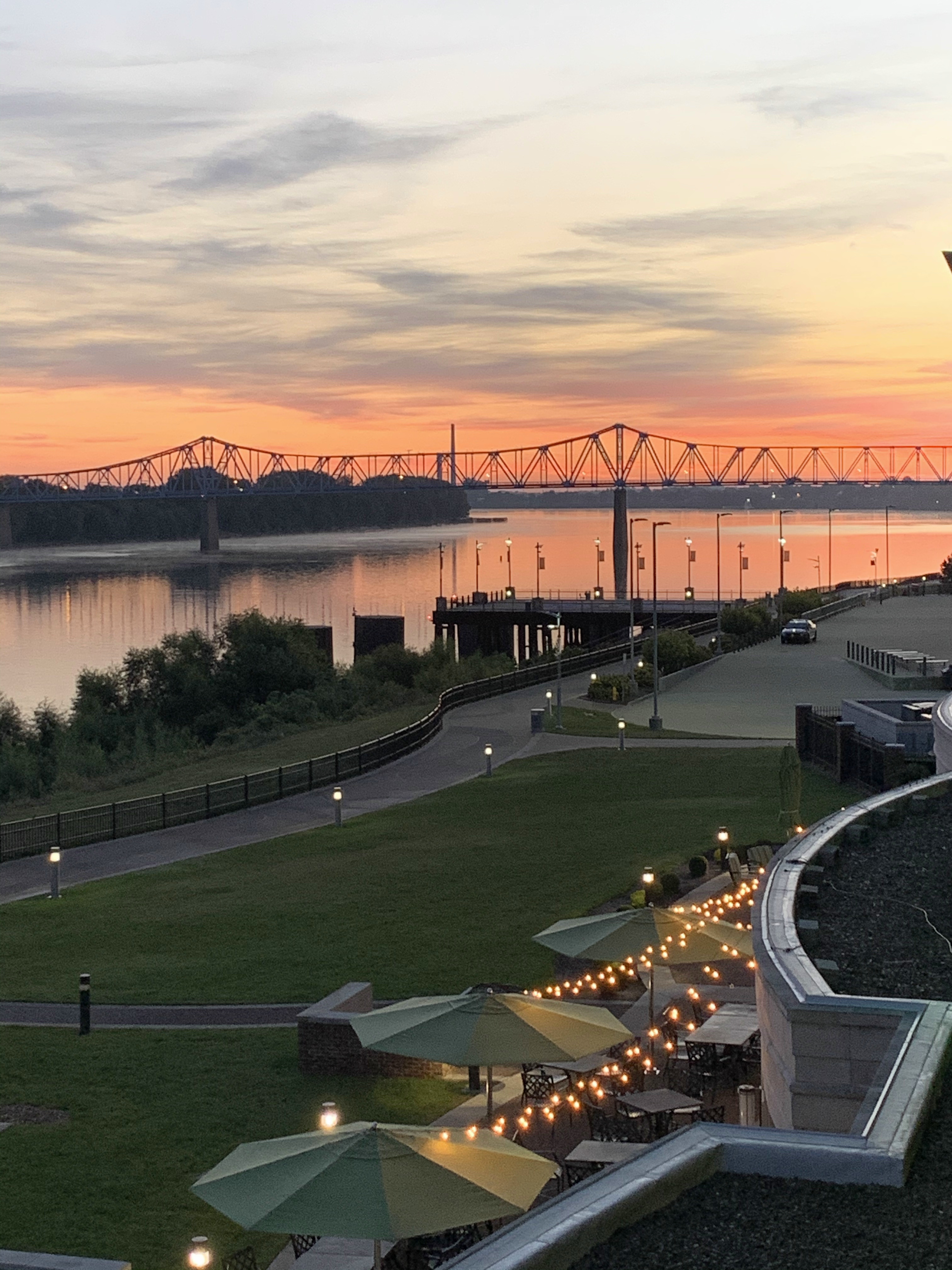 Sunset over the Ohio River. Holiday Inn Riverfront, Owensboro, Kentucky