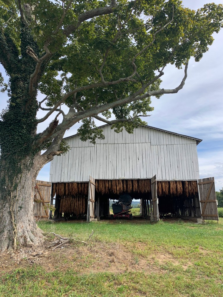 Tobacco leaves dry in a shed. Near Stephensport, Kentucky