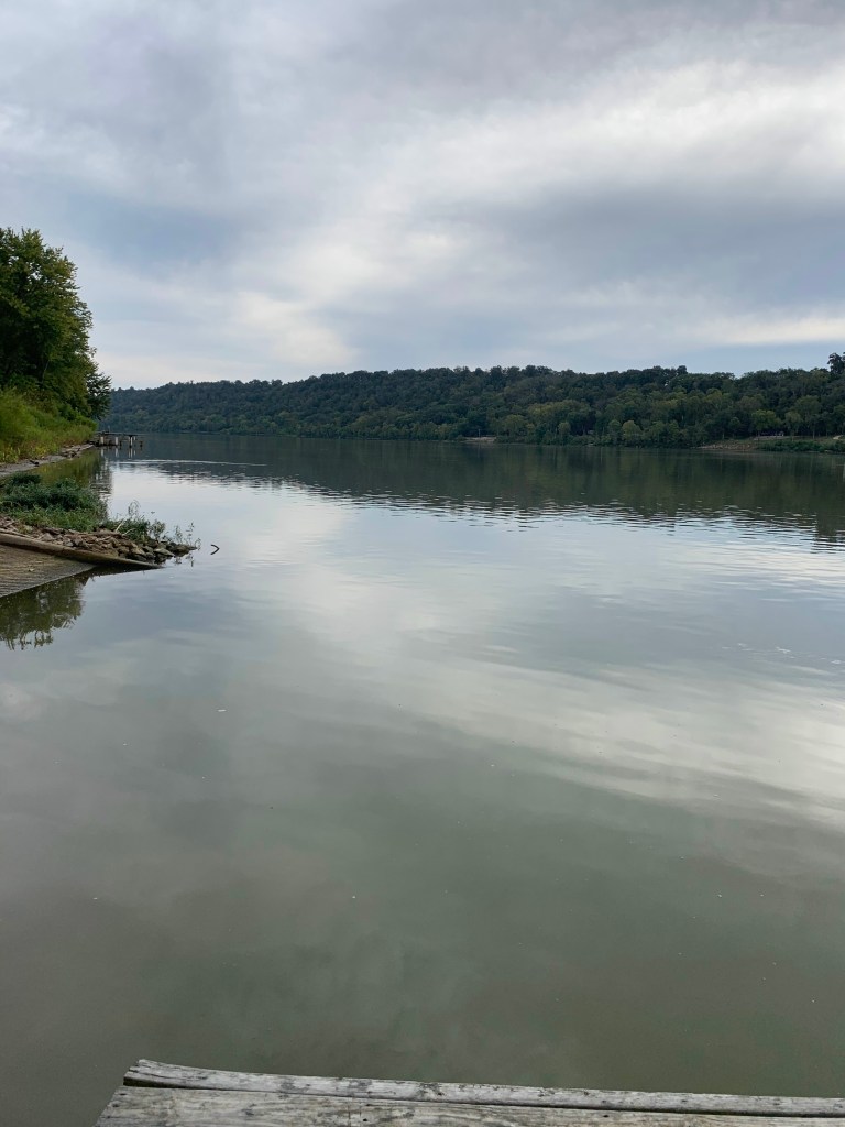 I stopped along the Ohio River in Rome, Indiana. It’s 9 o’clock in the morning. The waters are flat behind the Cannelton Dam just 10 or 20 miles downstream and the fish were biting like crazy! The overcast conditions come from some high clouds ahead of a tropical system coming ashore along the Gulf Coast.