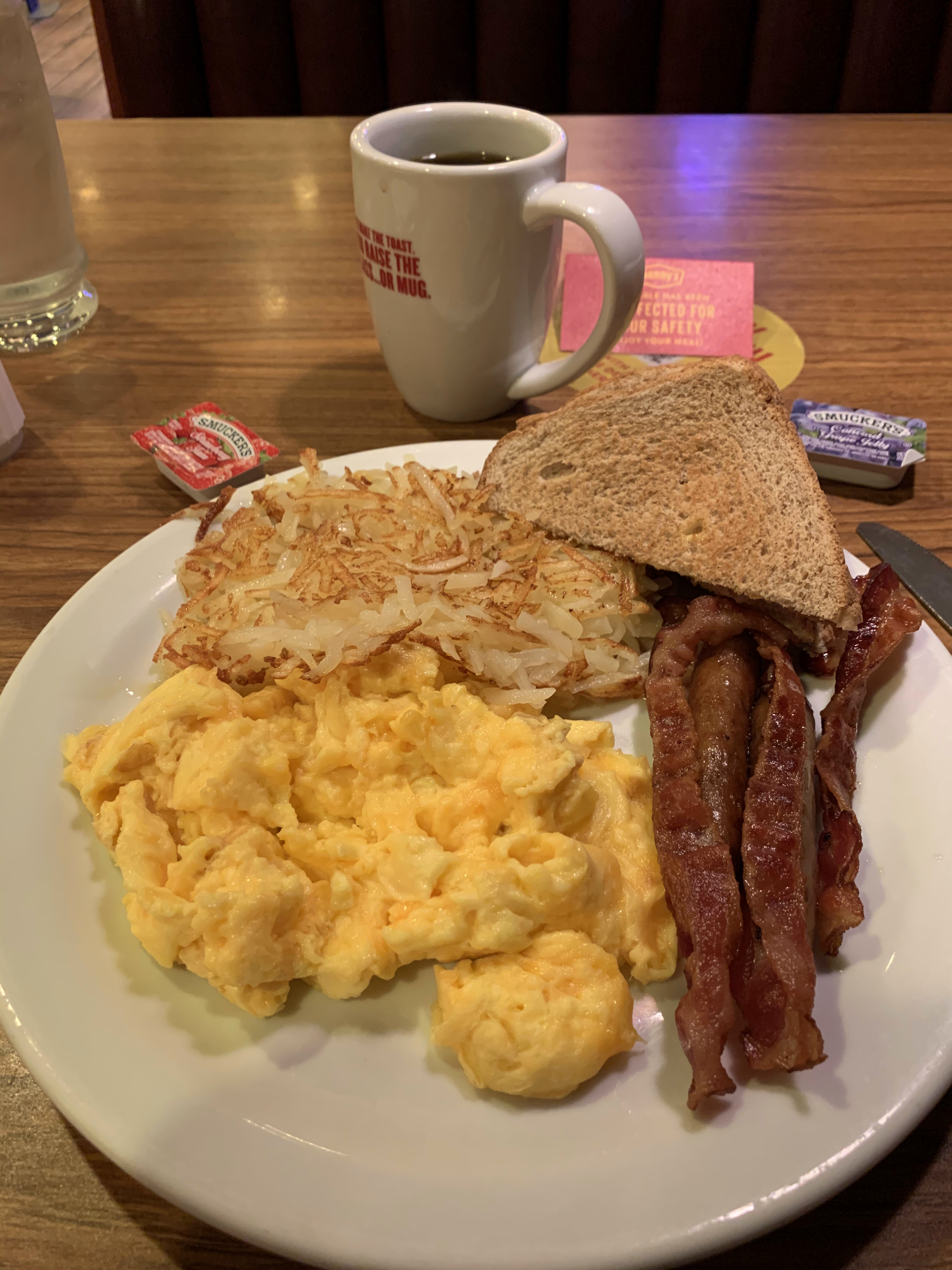 All-American Slam breakfast at Denny’s. Terre Haute, Indiana