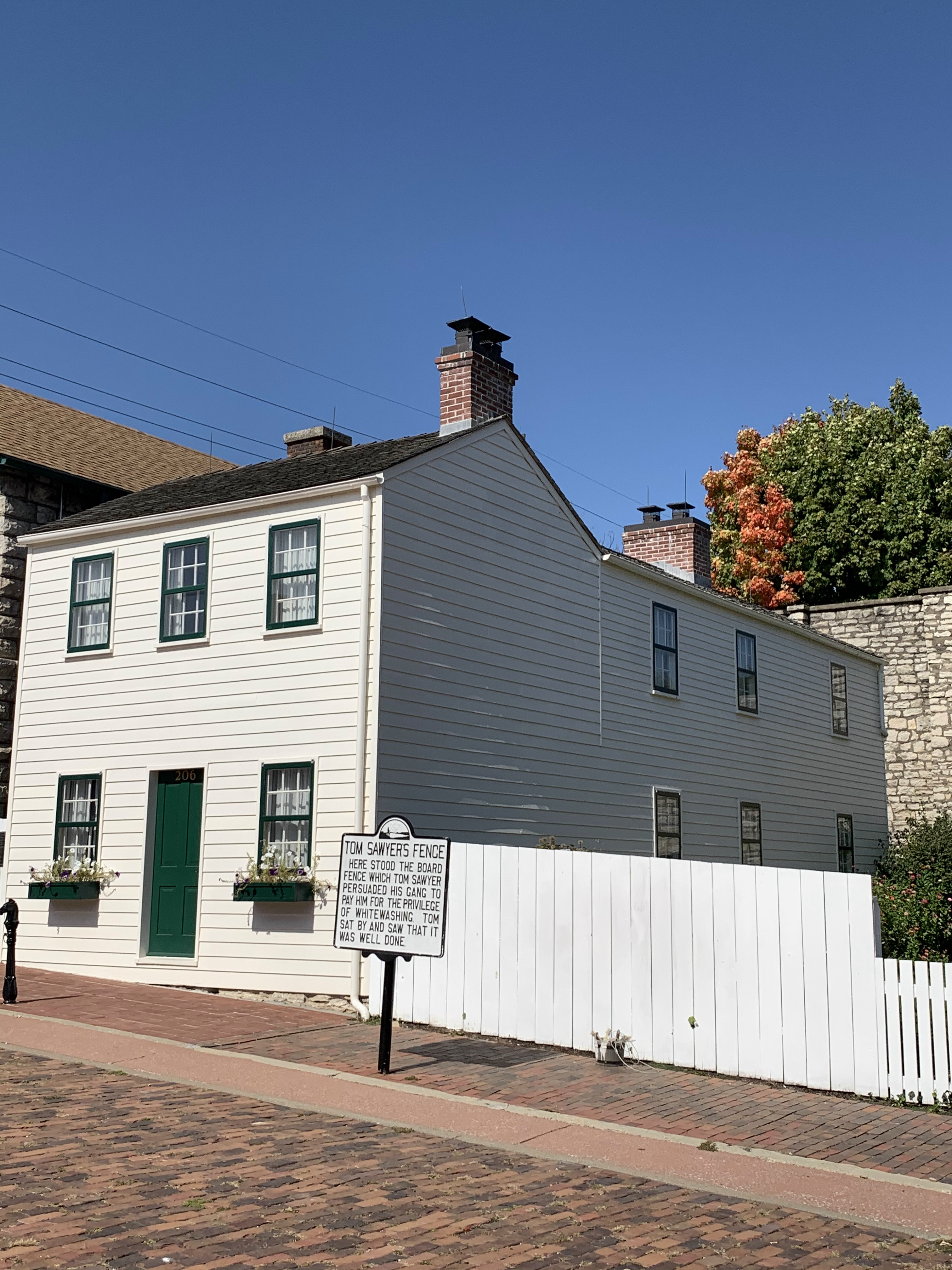 Tom Sawyer’s fence in Hannibal, MissouriMississippi riverboats moored at Hannibal, Missouri