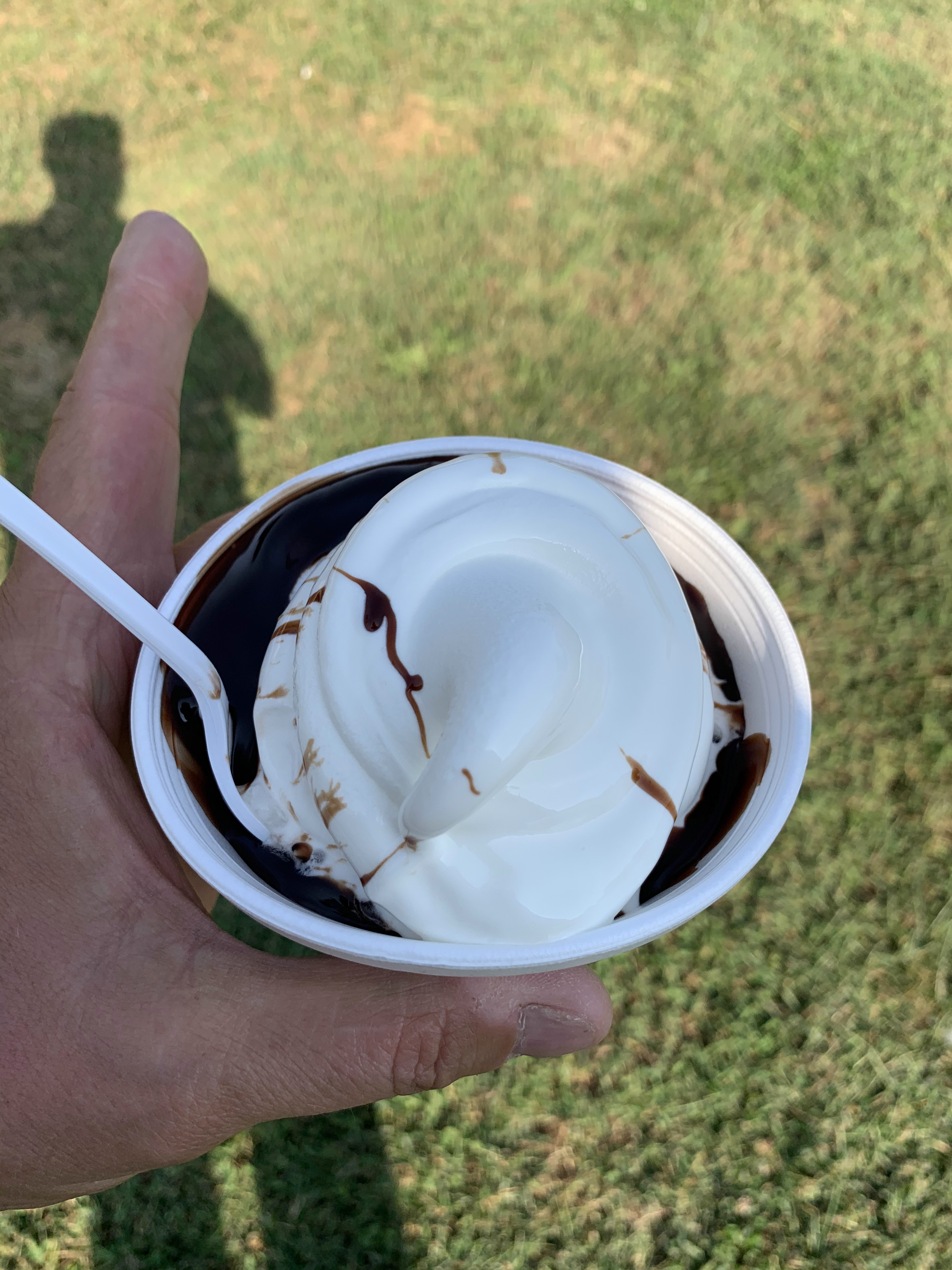 Breakfast at Burger King (my usual fully-loaded croissanwich), then a 2 1/2 hour drive to Boonville, Indiana, including a 1 1/2 hour stop at a Dairy Queen parking lot in Henderson, Kentucky to take part in a business call. It’s nice not having to be chained to an office, isn’t it?