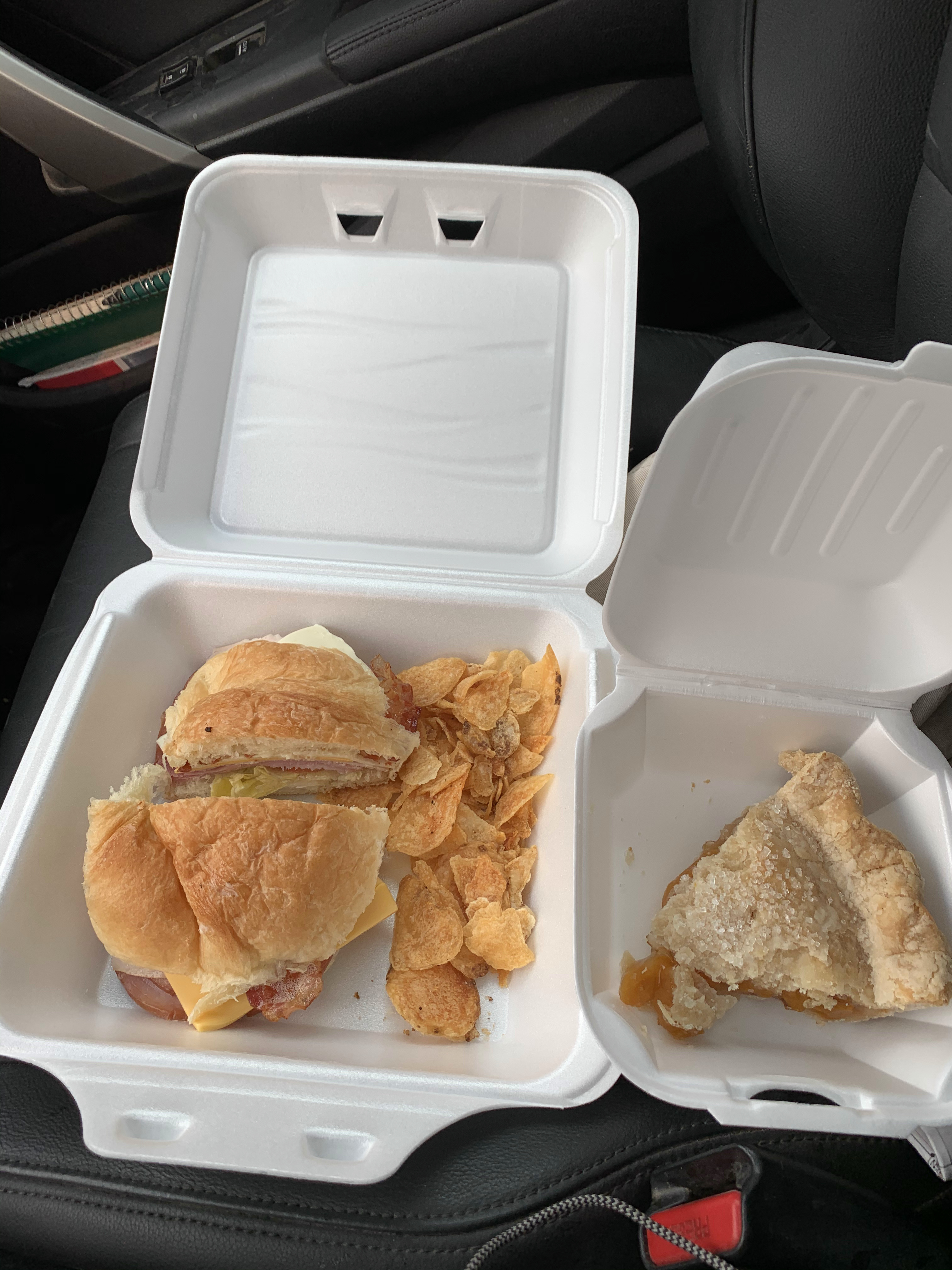 One more lunch behind the wheel on my way home. Peach pie for dessert. Phillipsburg, Kansas.