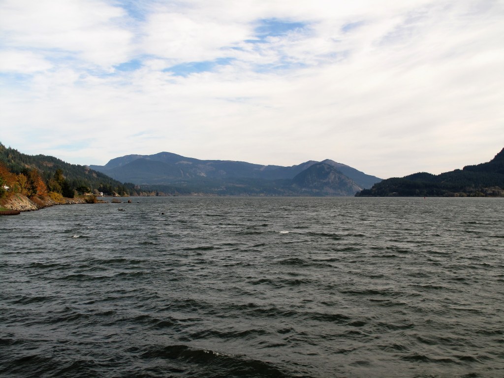In the 20th Century, a series of dams were built on the Columbia to help tame the river and to provide hydroelectric power. The Bonneville Dam, 10 miles downstream of Stevenson, was completed in 1937 and provides some calm to the river at this point. This is how the Columbia River at Stevenson looks today: