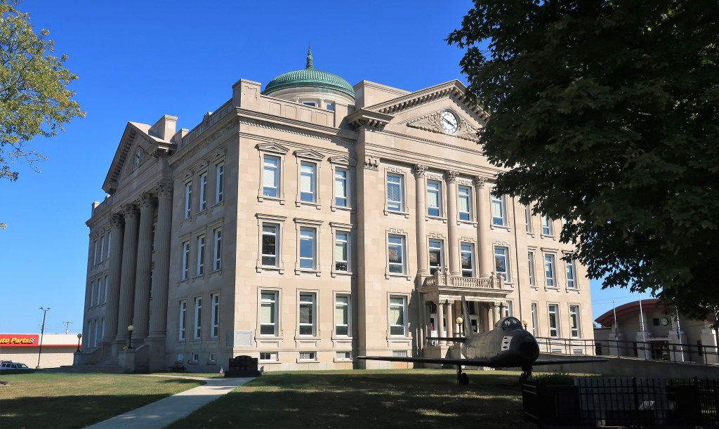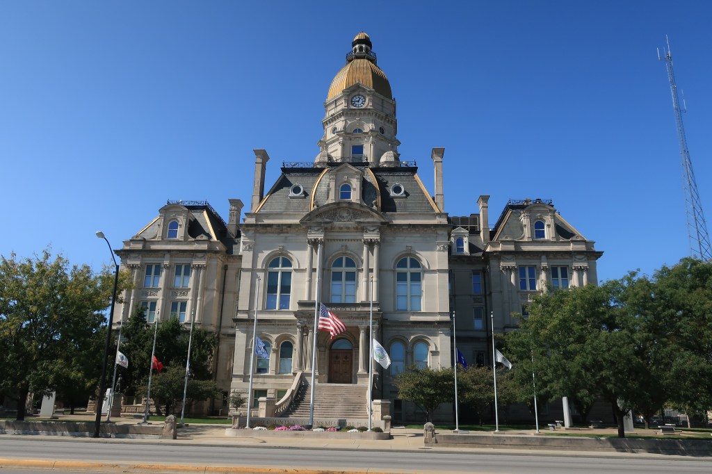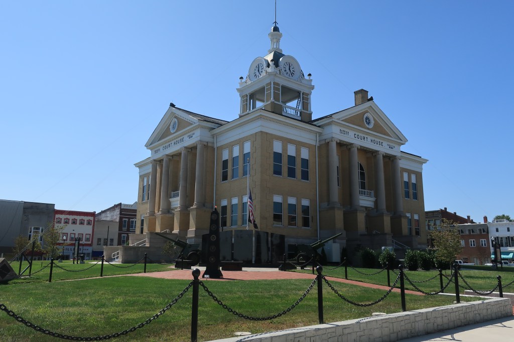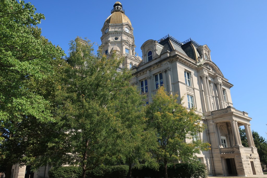 The next county to the north is Vigo County, home of the city of Terre Haute and Indiana State University. “Terre Haute” is French for “high ground,” and there is a lot of French influence around town, starting with the courthouse.