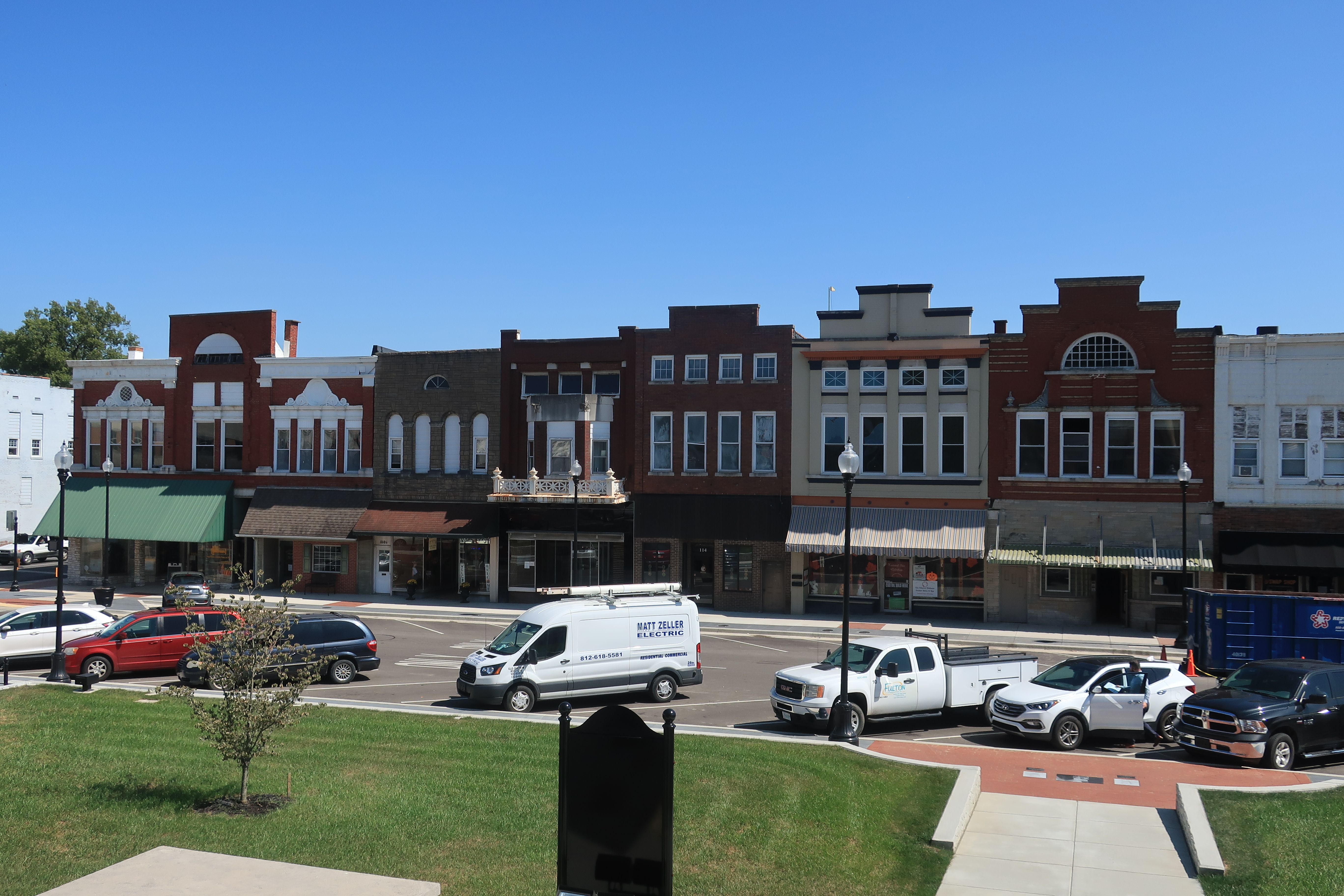 Locust Street businesses across from the courthouse. Boonville, Indiana