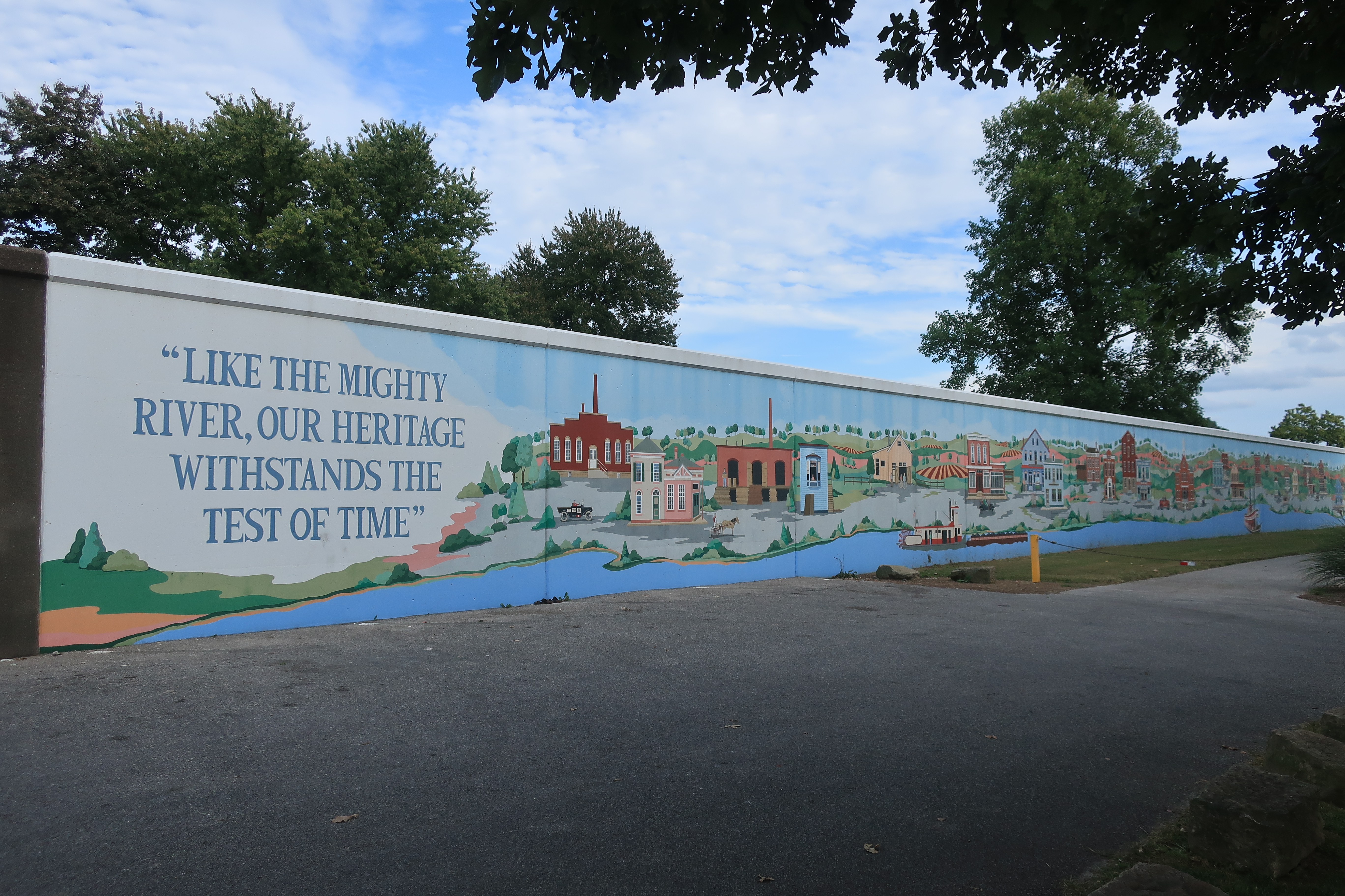 City Hall. Tell City, IndianaTell City, IndianaStatue of William Tell and his son. Tell City, IndianaSt. Paul’s Catholic Church. Tell City, IndianaMurals on Ohio River floodwall. Tell City, IndianaMurals on the Ohio River floodwall. Tell City, Indiana