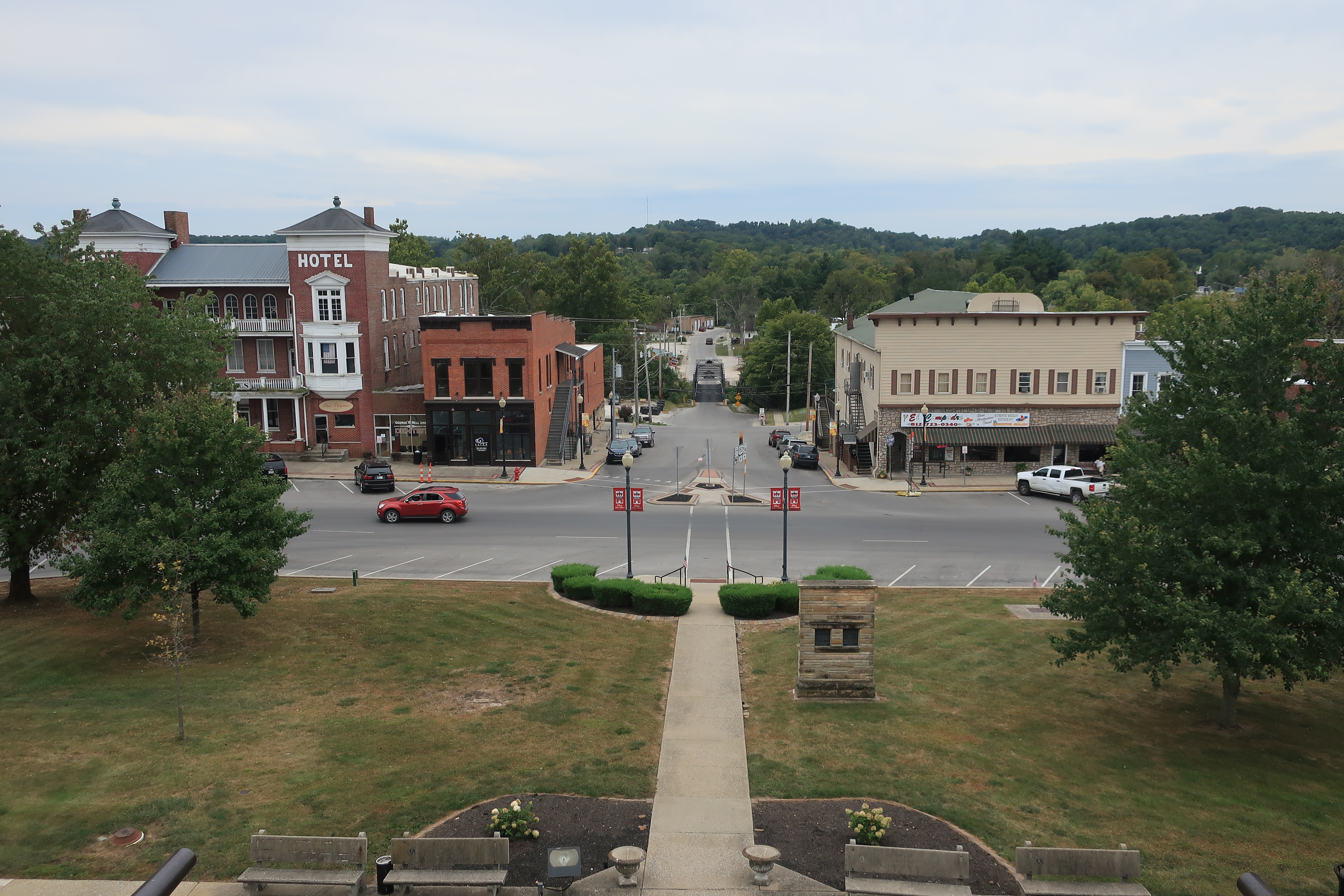 Off to Rockport, Indiana, the county seat of Spencer County, on the banks of the Ohio River. The town is situated on a bluff above the river, allowing for some million-dollar views on a sunny September day.