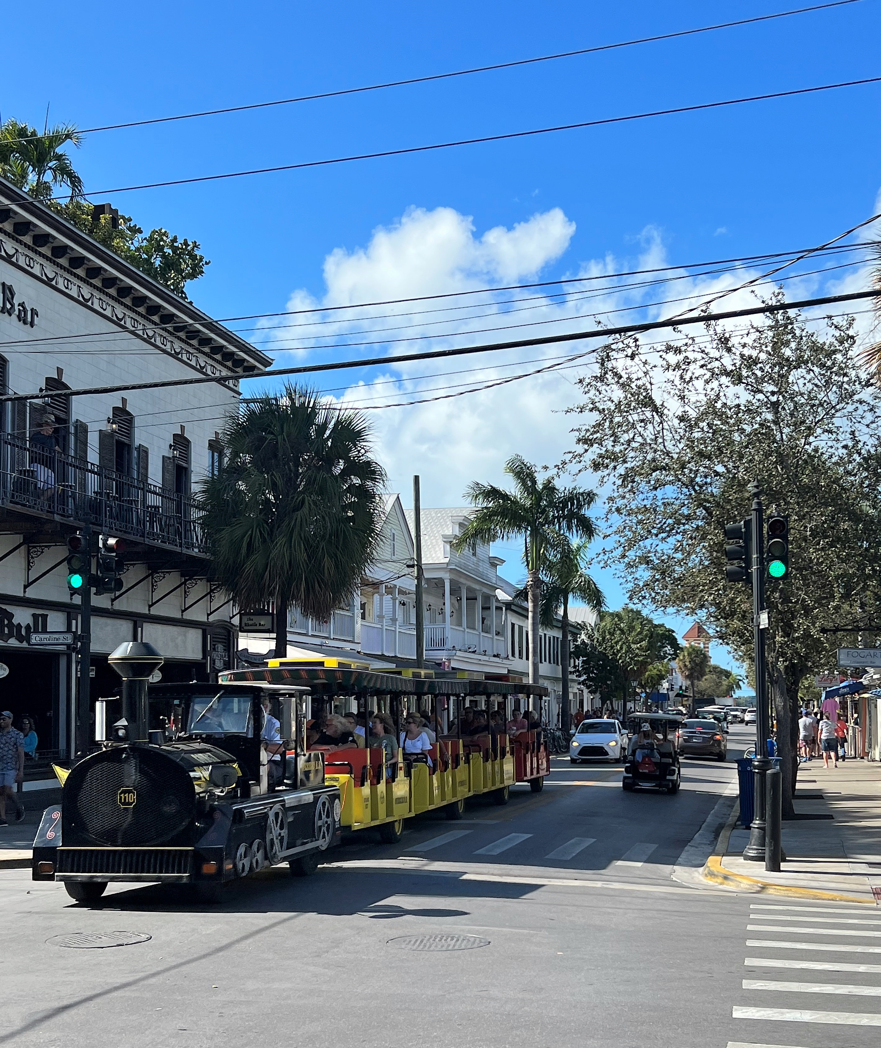 A train/tram carrying tourists down Duval Street. Key West, Florida