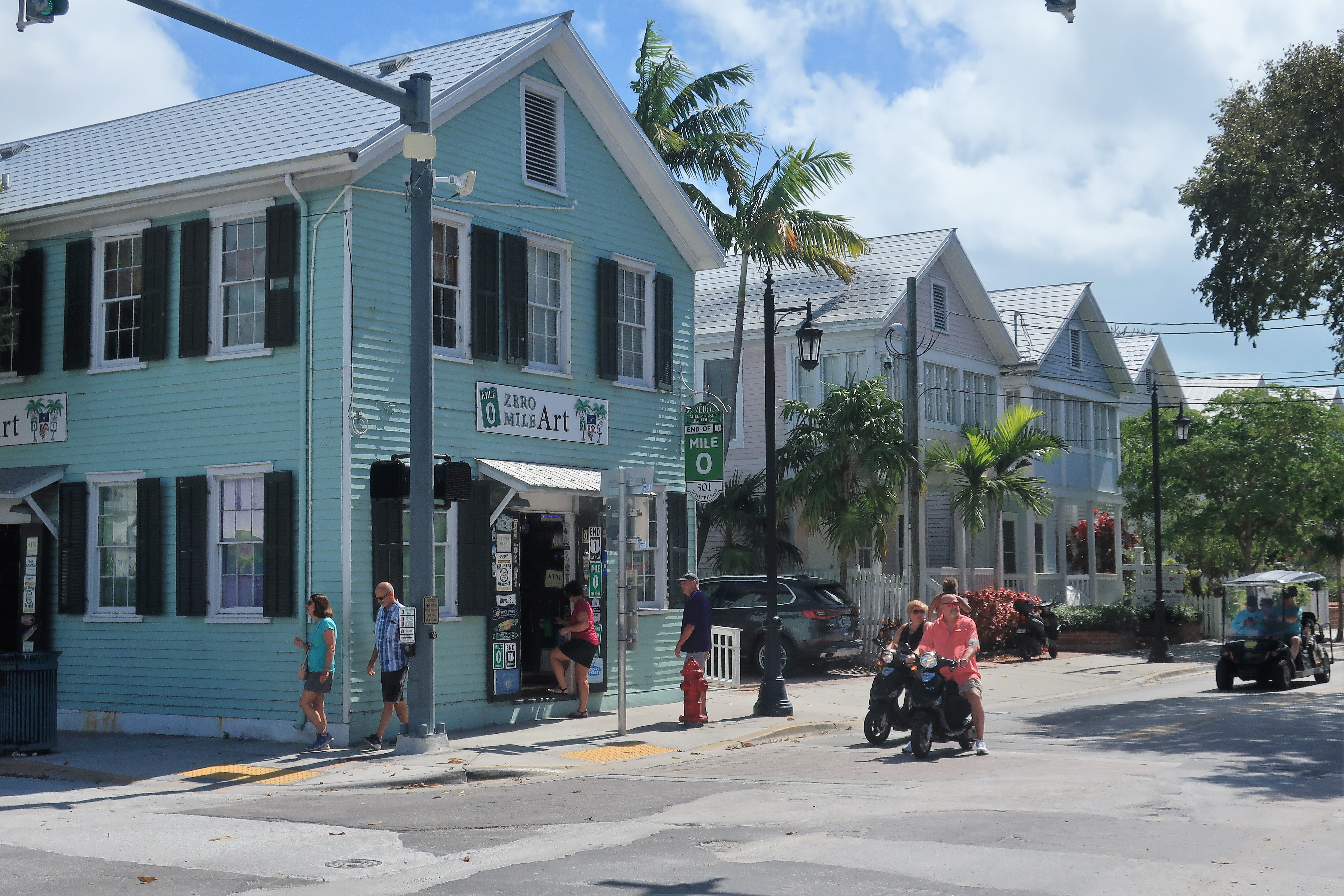 The corner of Whitehead and Fleming Streets marks mile marker 0 of U.S. Highway 1. Tour guides and souvenir shops can be found at this corner, as can adventurous long-haul travelers starting the road trip of their lives — 2,370 miles along U.S. Highway 1 from Key West to its northern terminus in Fort Kent, Maine.
