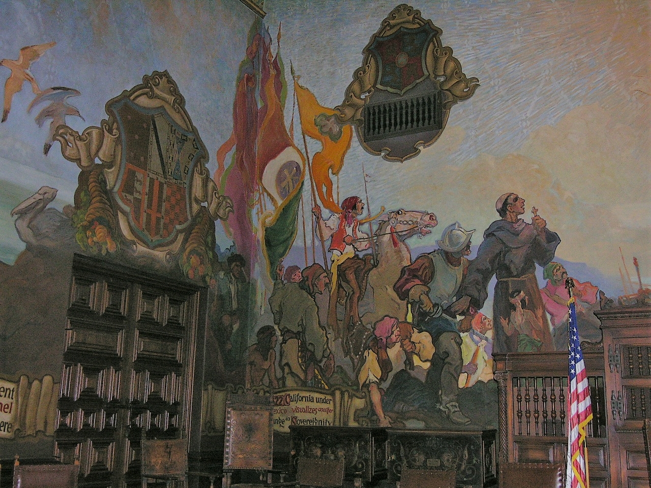 Not to be outdone by the magnificent exterior, the magnificent courthouse interior includes a mural room and other paintings. I’ll just show them below as a set of tiled galleries: