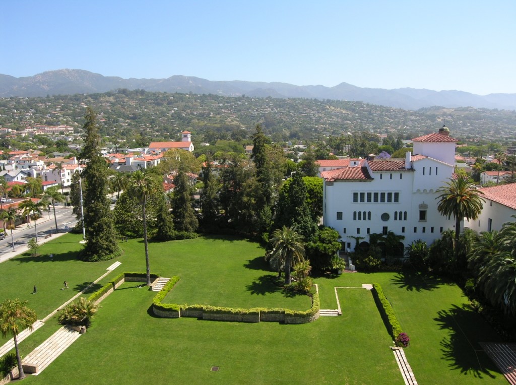 The town of Santa Barbara and California’s Santa Ynez Mountains beyond. This photo was taken in 2005 from atop the county courthouse.