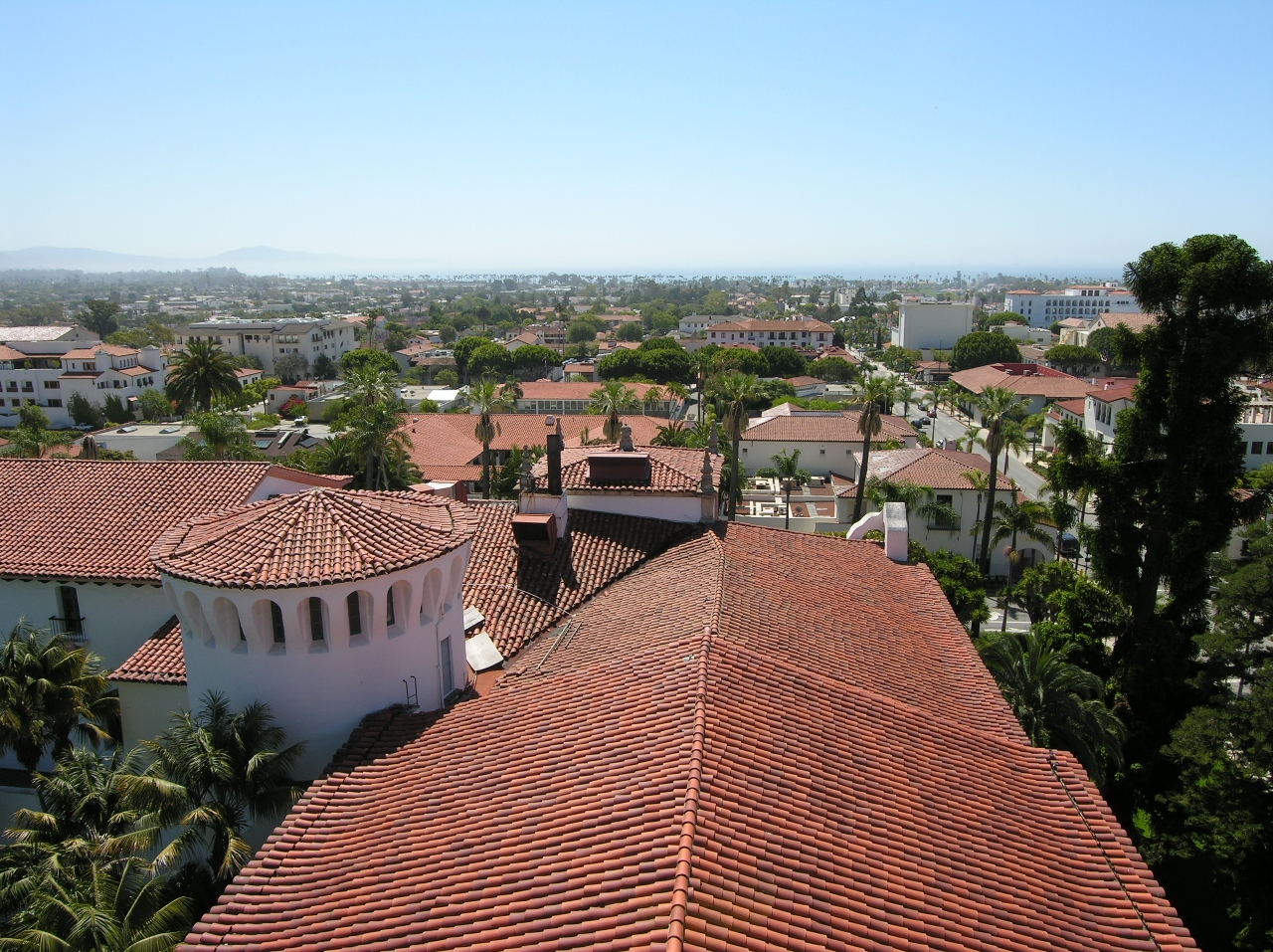 Courthouse roof and other red tiled roofs. Santa Barbara, California