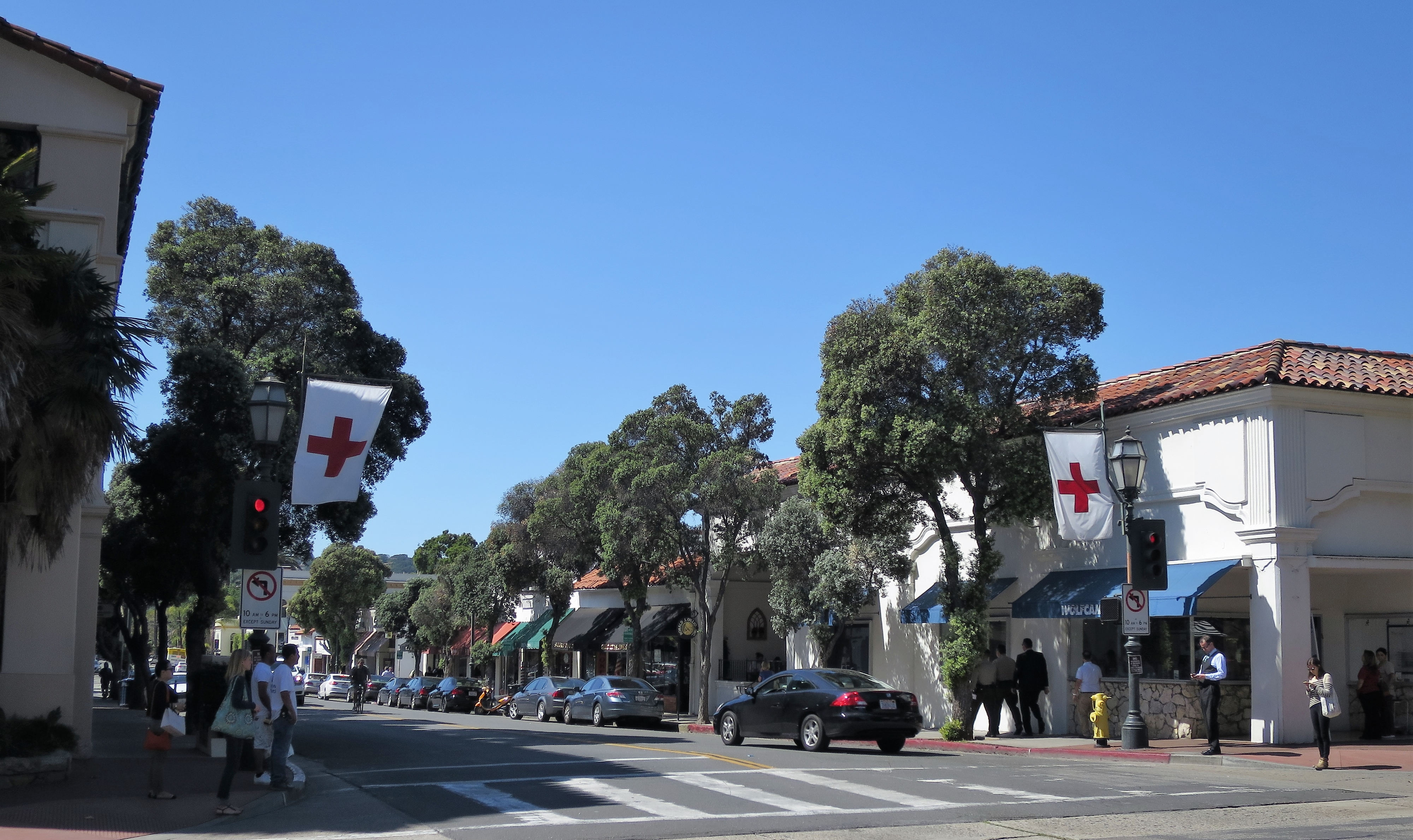State Street is Santa Barbara’s main shopping and commercial street. I photographed the shops and the shoppers.  Italian restaurants were mixed in with jewelry stores and fashion stores.  Most if not all buildings were done in the Spanish Adobe style.