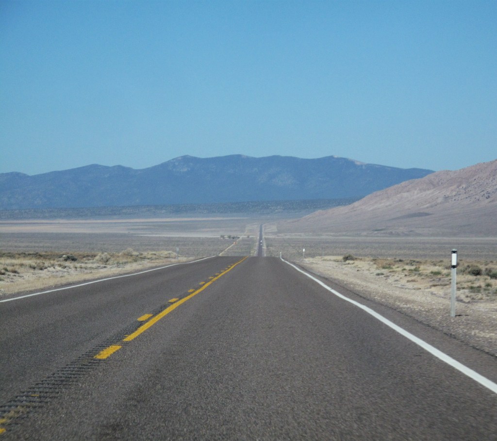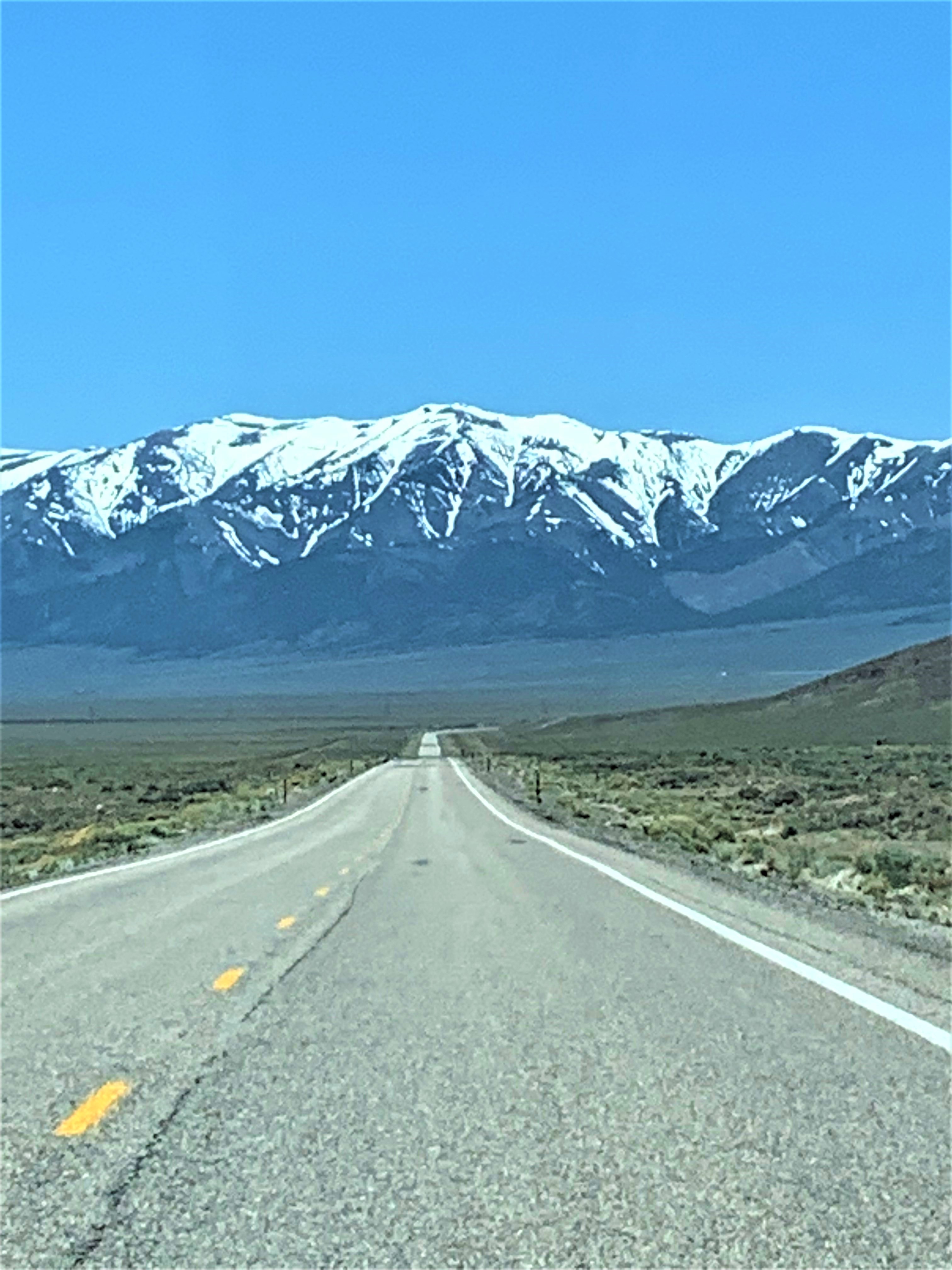 The Loneliest Road in America with the Toiyabe Range in the distance. US 50 between Eureka and Austin, Nevada.
