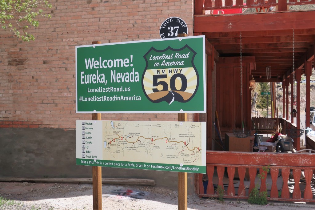 Map of US Highway 50 across Nevada. Eureka is at #5 on the map, in east-central Nevada.