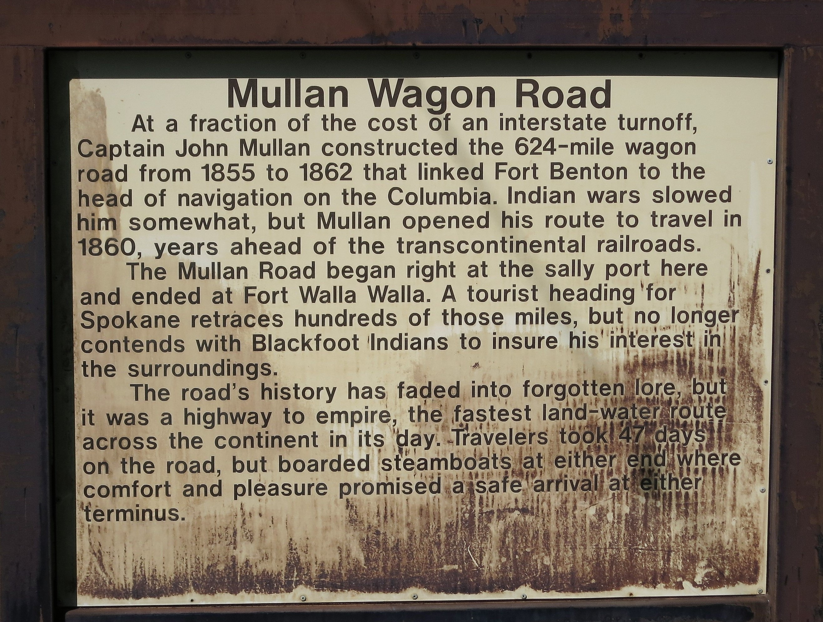 In 1860, the U.S. Army completed the Mullan Wagon Road, a 624-mile military road from Fort Benton to Fort Walla Walla, present-day Washington state, effectively linking the Missouri River to the waters of the Columbia River and the Pacific Ocean.
