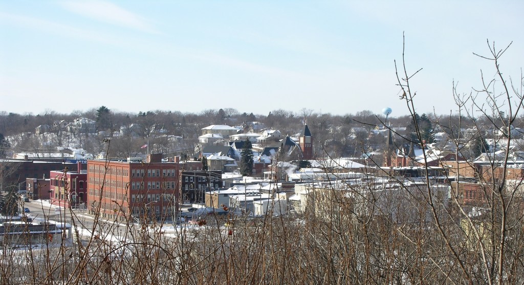 Chippewa Falls, Wisconsin, from the heights of Notre Dame Church on a cold January Sunday.