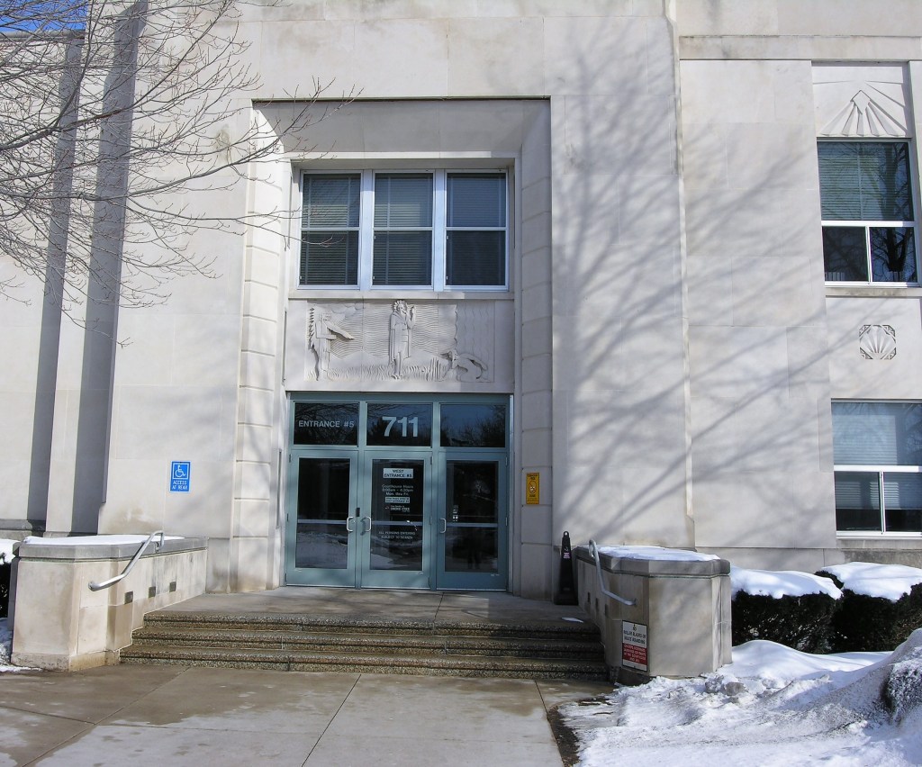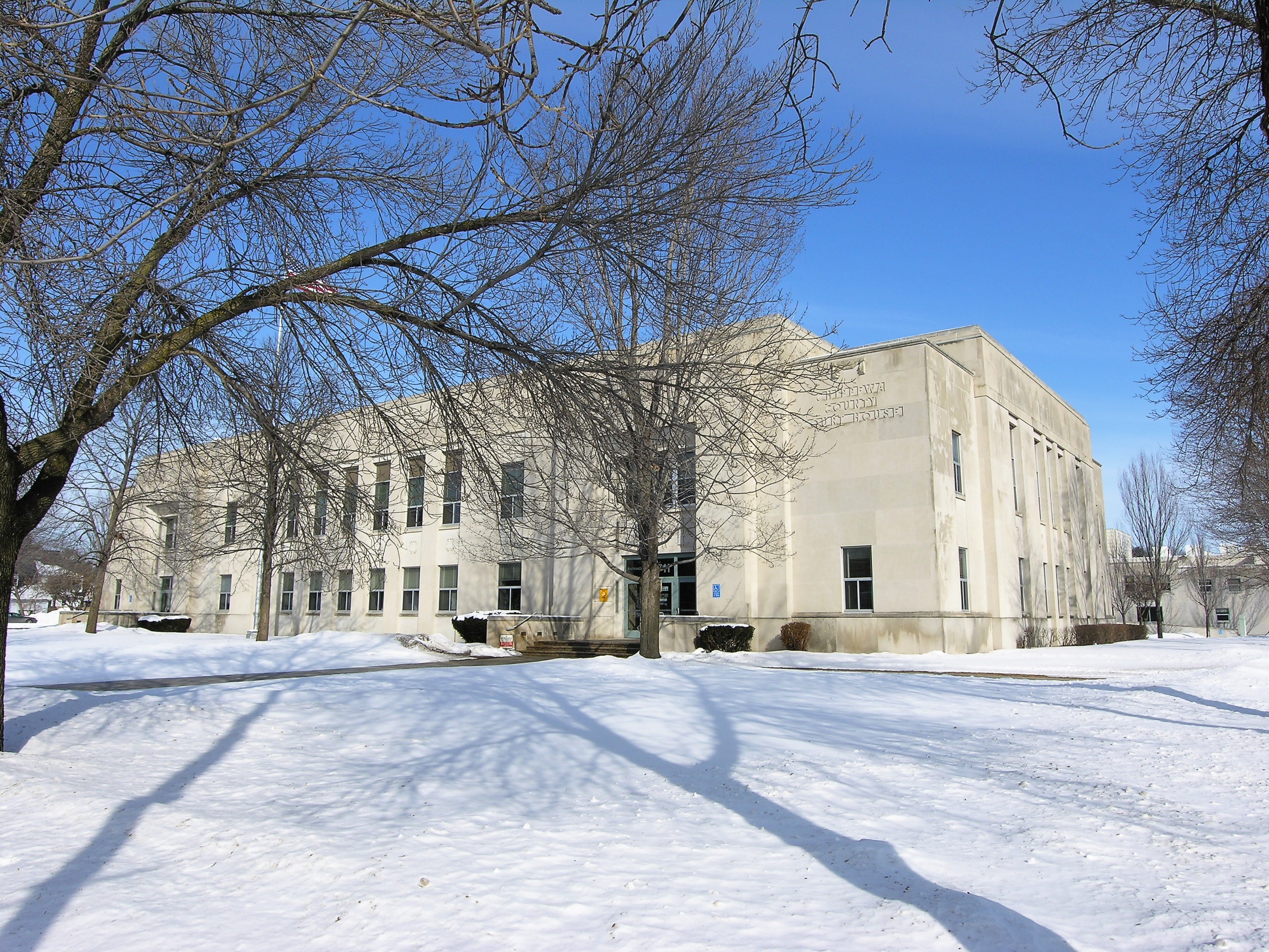 Finally, the Chippewa County Courthouse and its snowy grounds: