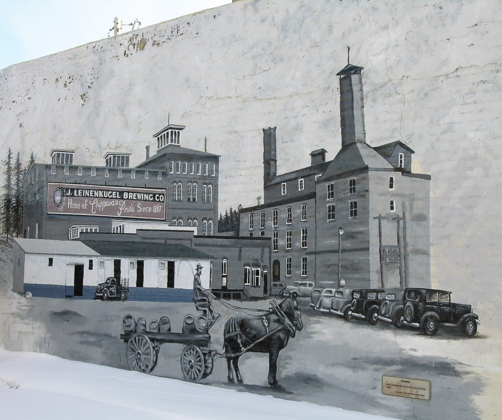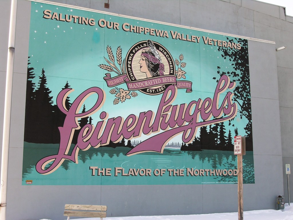 A street mural advertising Leinenkugel’s Brewery, Chippewa Falls’ most famous business.