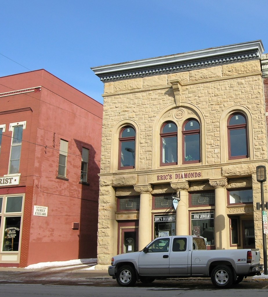 Walking downtown on a Sunday at noon, I had trouble finding retail establishments to patronize. Olson’s Ice Cream Parlor was open (in frigid January), but hardly anything else — including the “4:30 am Espresso Drive-thru.” “Yes” to ice cream in January, but not to coffee?