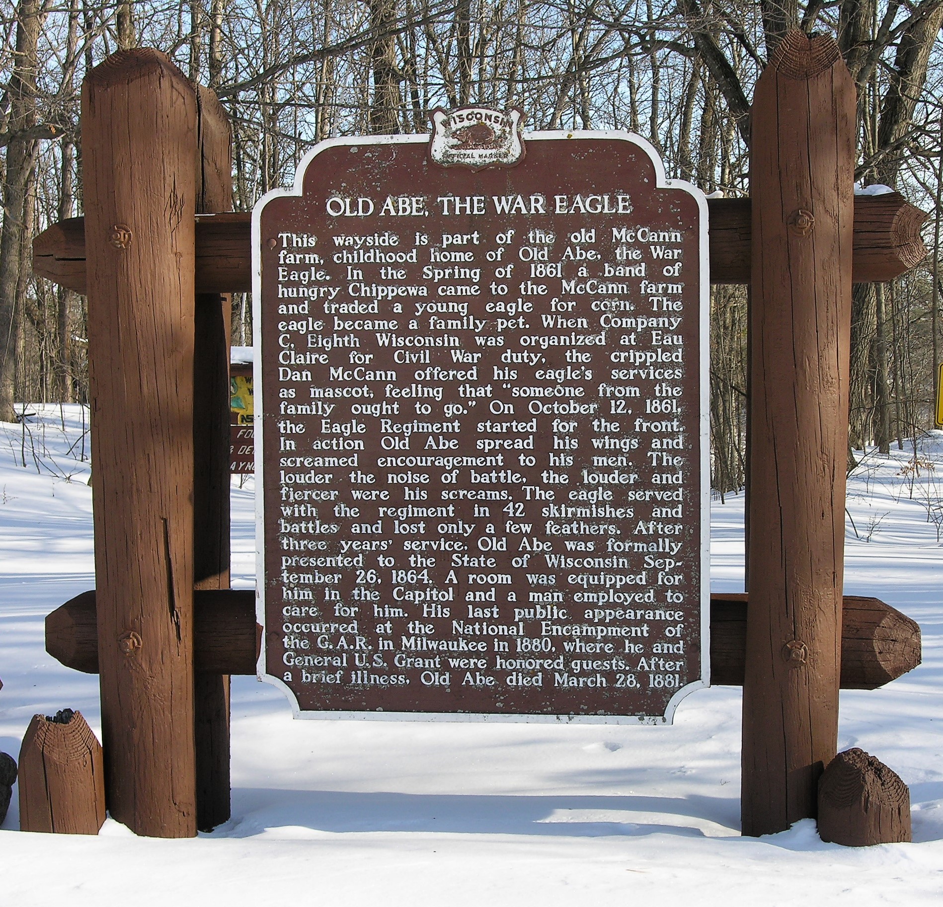 Historical sign describing the life of Old Abe the War Eagle.