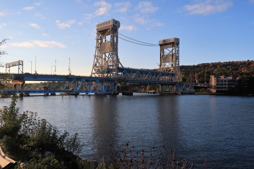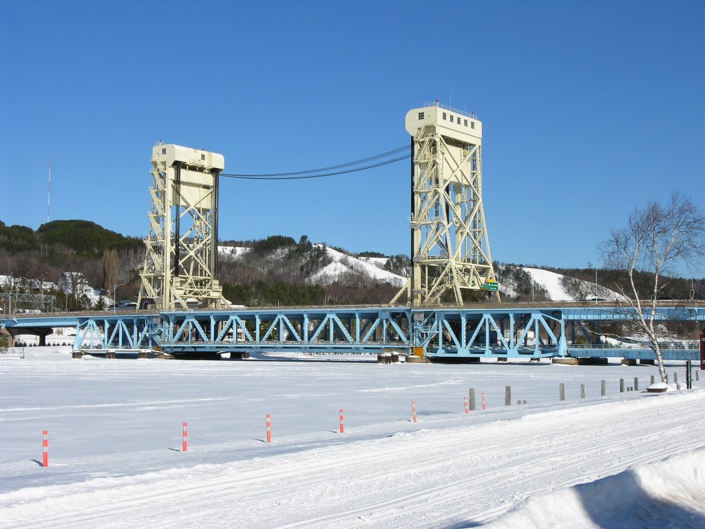 The Portage Lake Lift Bridge is the only land-based link between the two sides of the waterway and connects the city of Houghton to the town of Hancock on the opposite side. The middle section of the bridge can be lifted from 4 feet to 100 feet clearance above the water level to allow ship traffic through. U.S. Route 41 is routed across the bridge. The bridge was dedicated as a National Historic Engineering Landmark in June 2022.