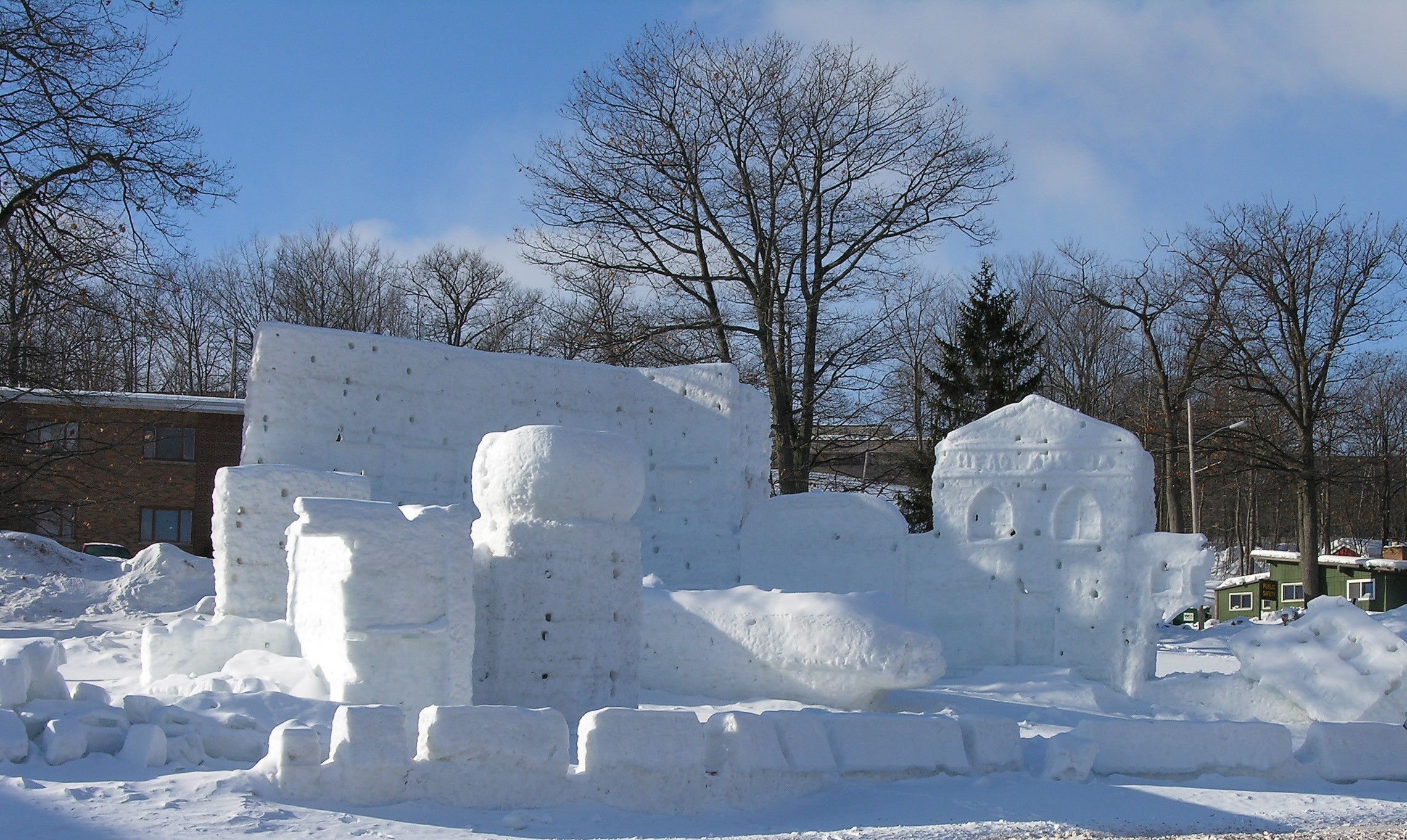 One of many Winter Carnival ice sculptures on the campus of Michigan Tech in February 2009.