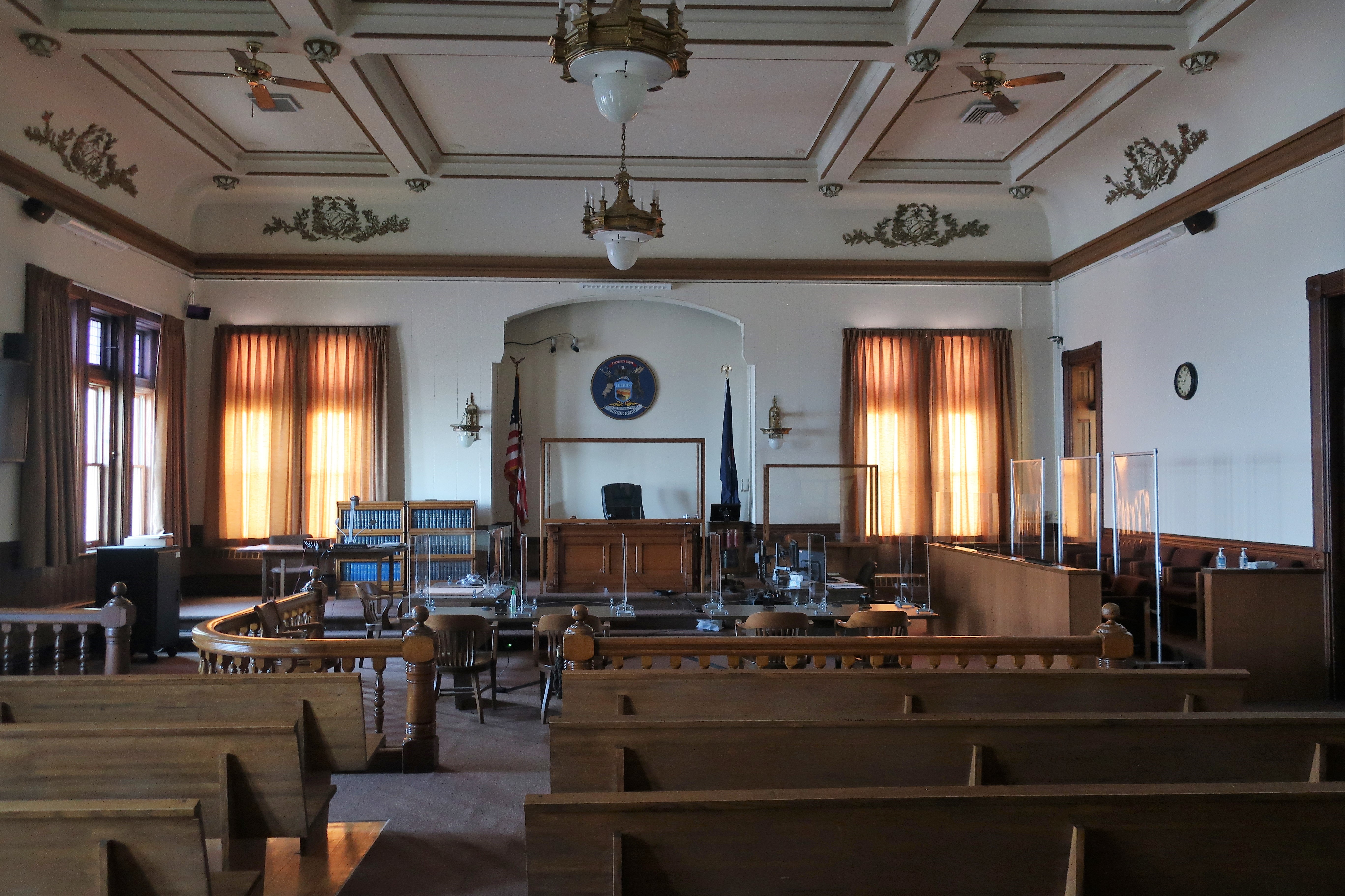 The Fifth-floor courtroom in the Houghton County Courthouse. Houghton, Michigan.