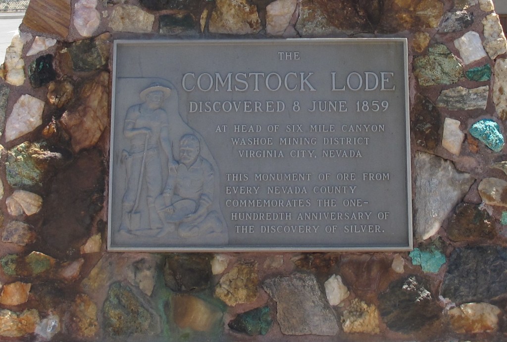 Monument to the Comstock Lode silver strike of 1859 in Virginia City, Nevada.