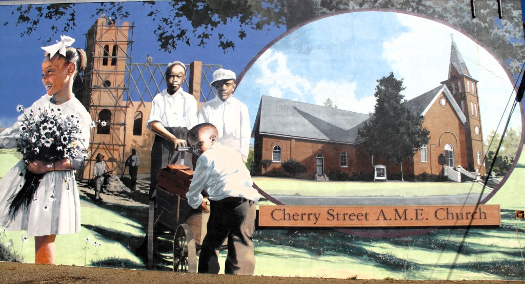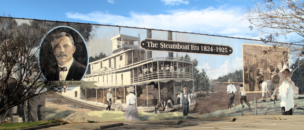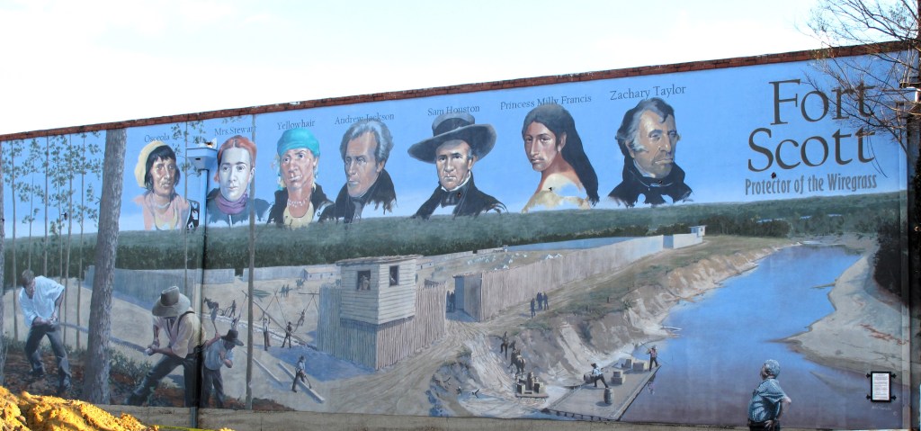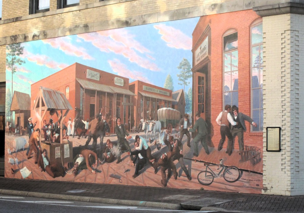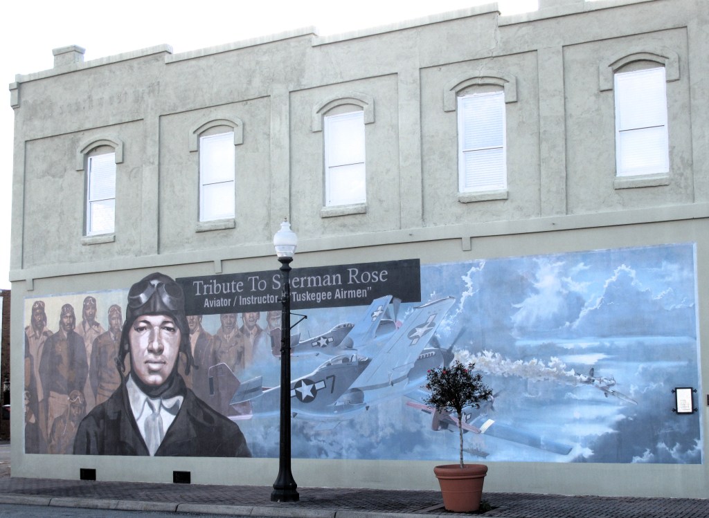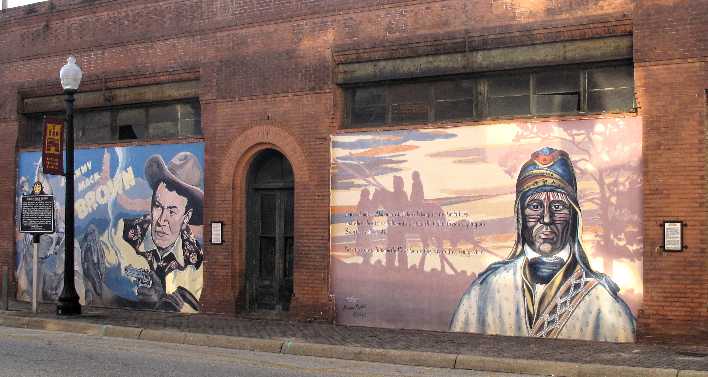 I took a bunch of photos of vivid murals along St. Andrews Street. The murals depict old Fort Scott, the Steamboat Era, Creek Indian chiefs, the Dothan riot of 1889, the famous Tuskegee Airmen, and favorite-son-turned-movie-star James Mack Brown. They are a history lesson about this part of the country.