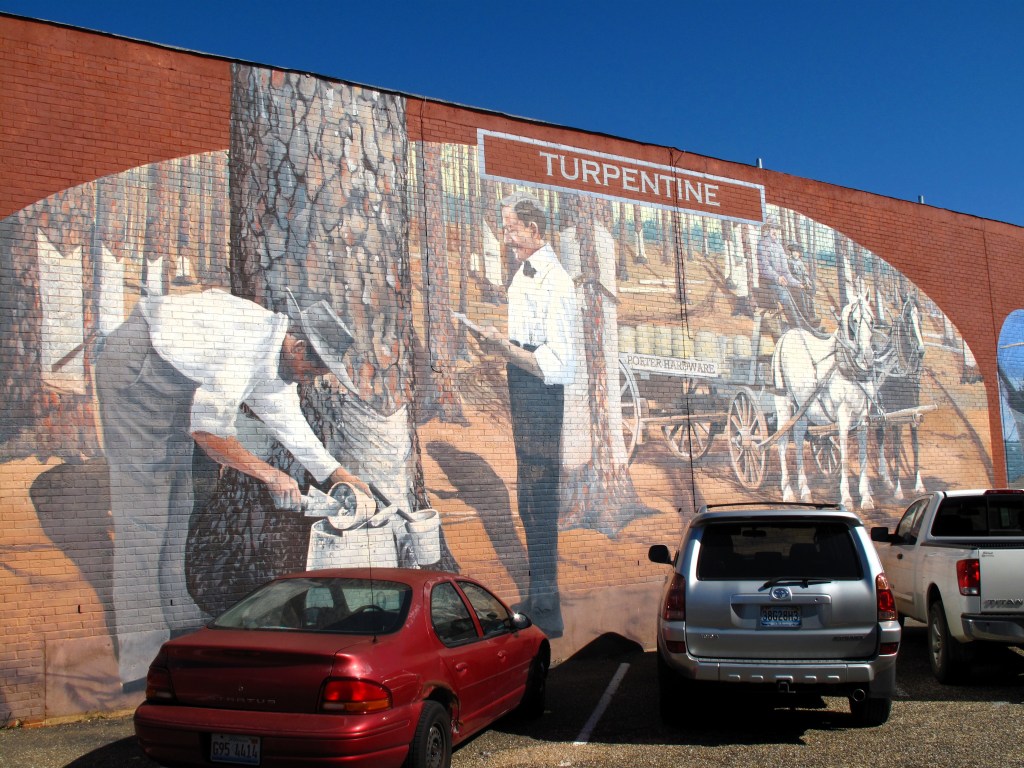 Some of the murals describe life in this rural southeastern Alabama town — full of turpentine, logging, cotton, and country music. That’s awesome, since Alabama is often overlooked by the rest of the country.