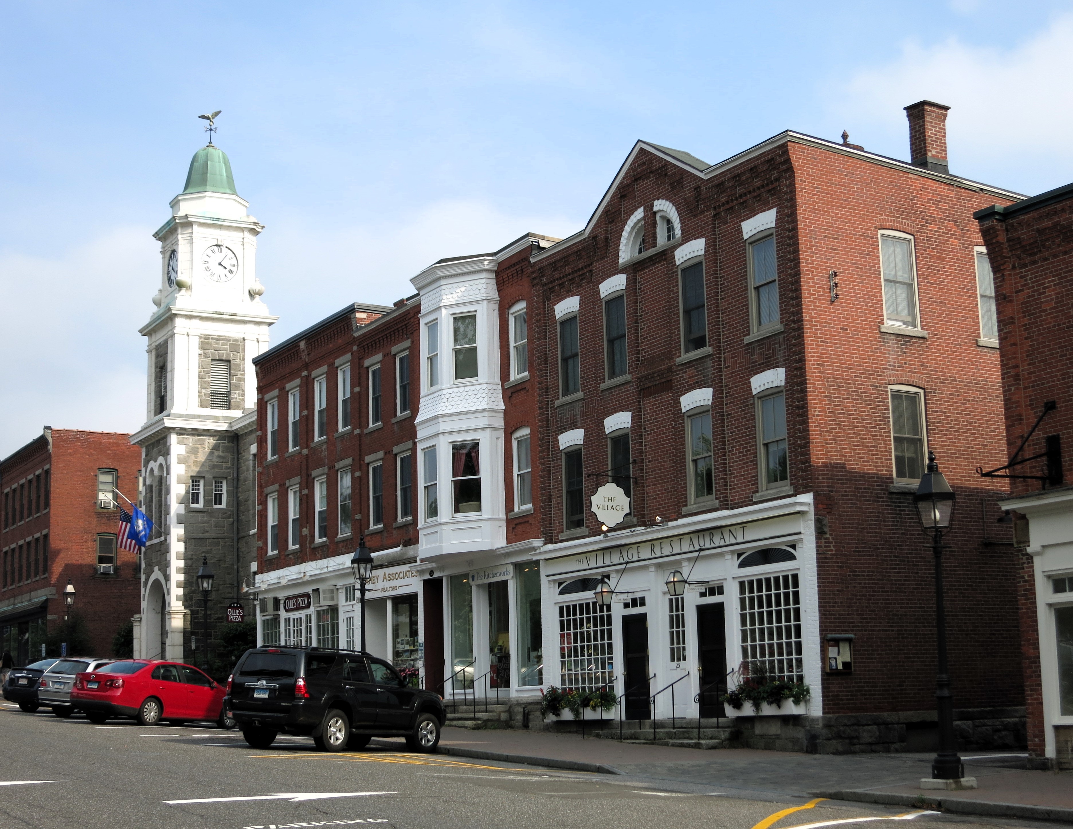 Litchfield’s “main street” is a row of small business buildings leading up to the old courthouse.