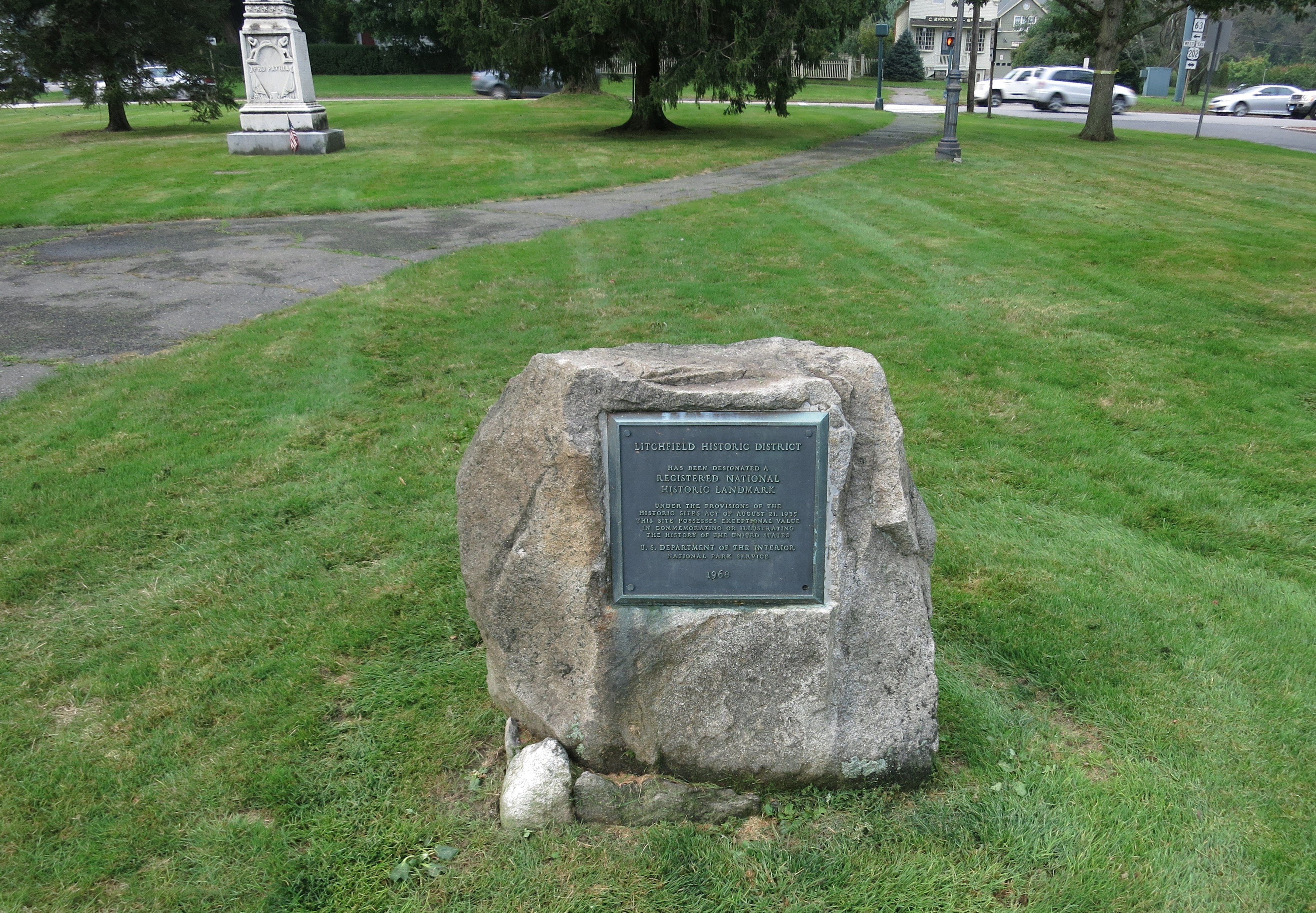 The Litchfield village green. The old county courthouse is in the background in the photo above, while the green’s many monuments appear in the images below.