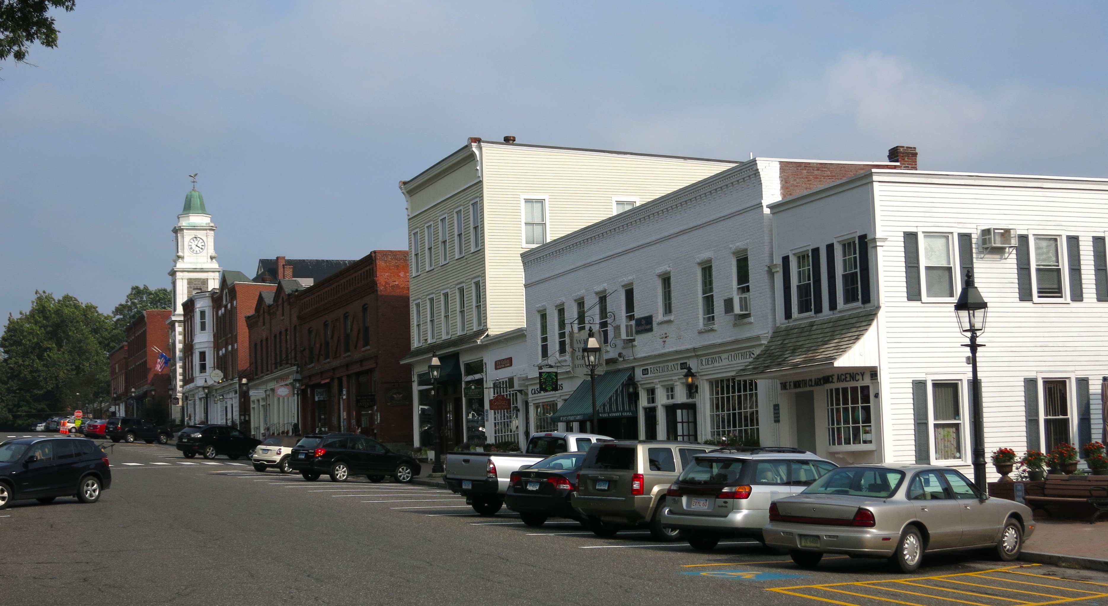 Litchfield’s “main street” is a row of small business buildings leading up to the old courthouse.